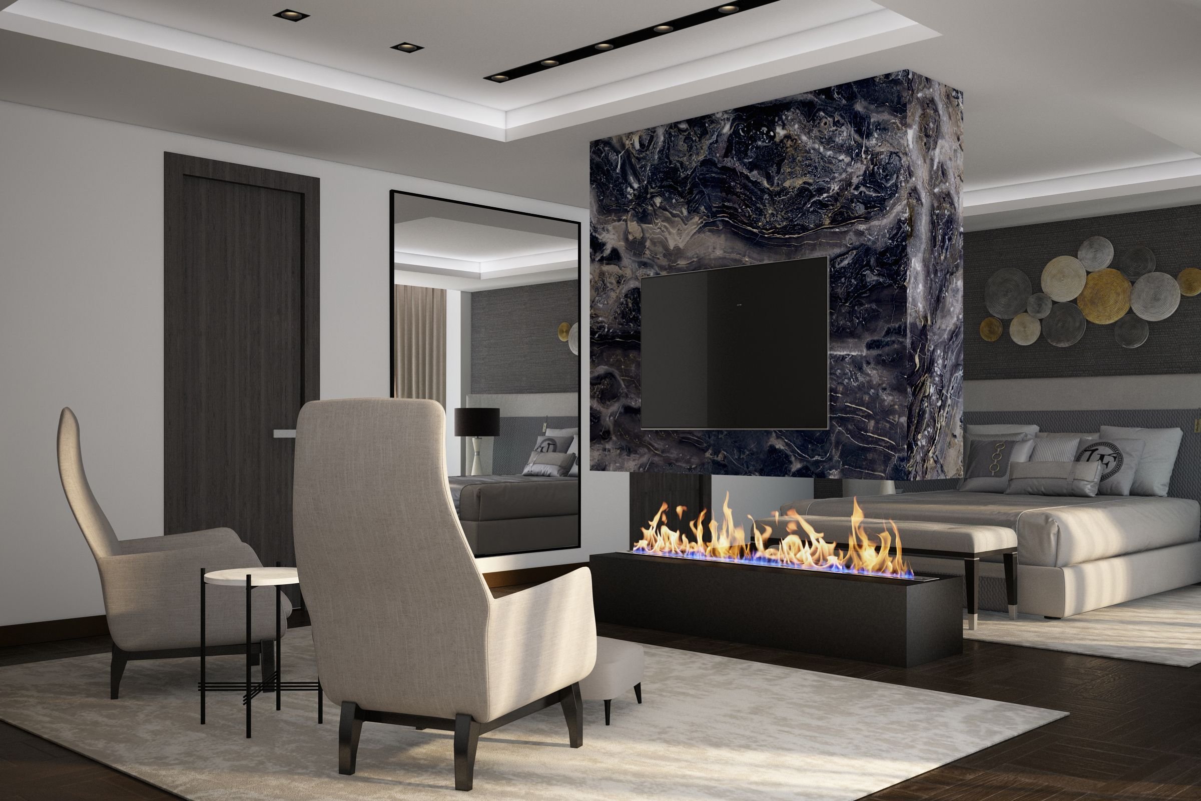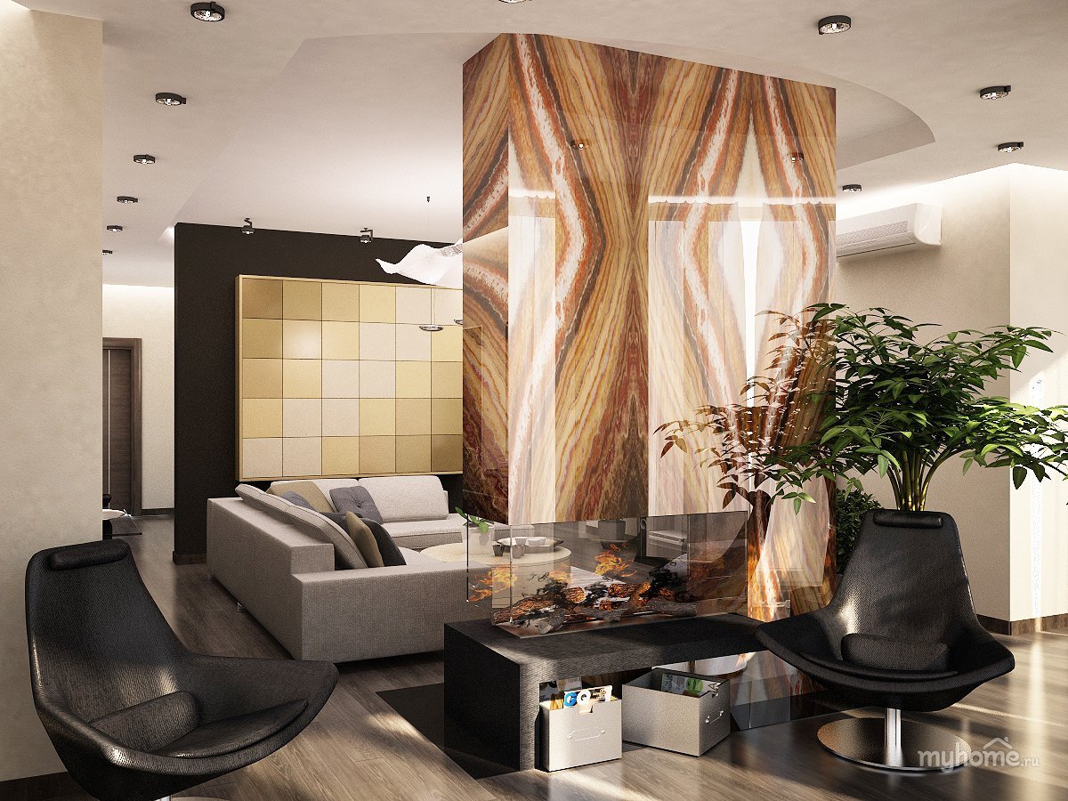 Гостиная с мраморной стеной