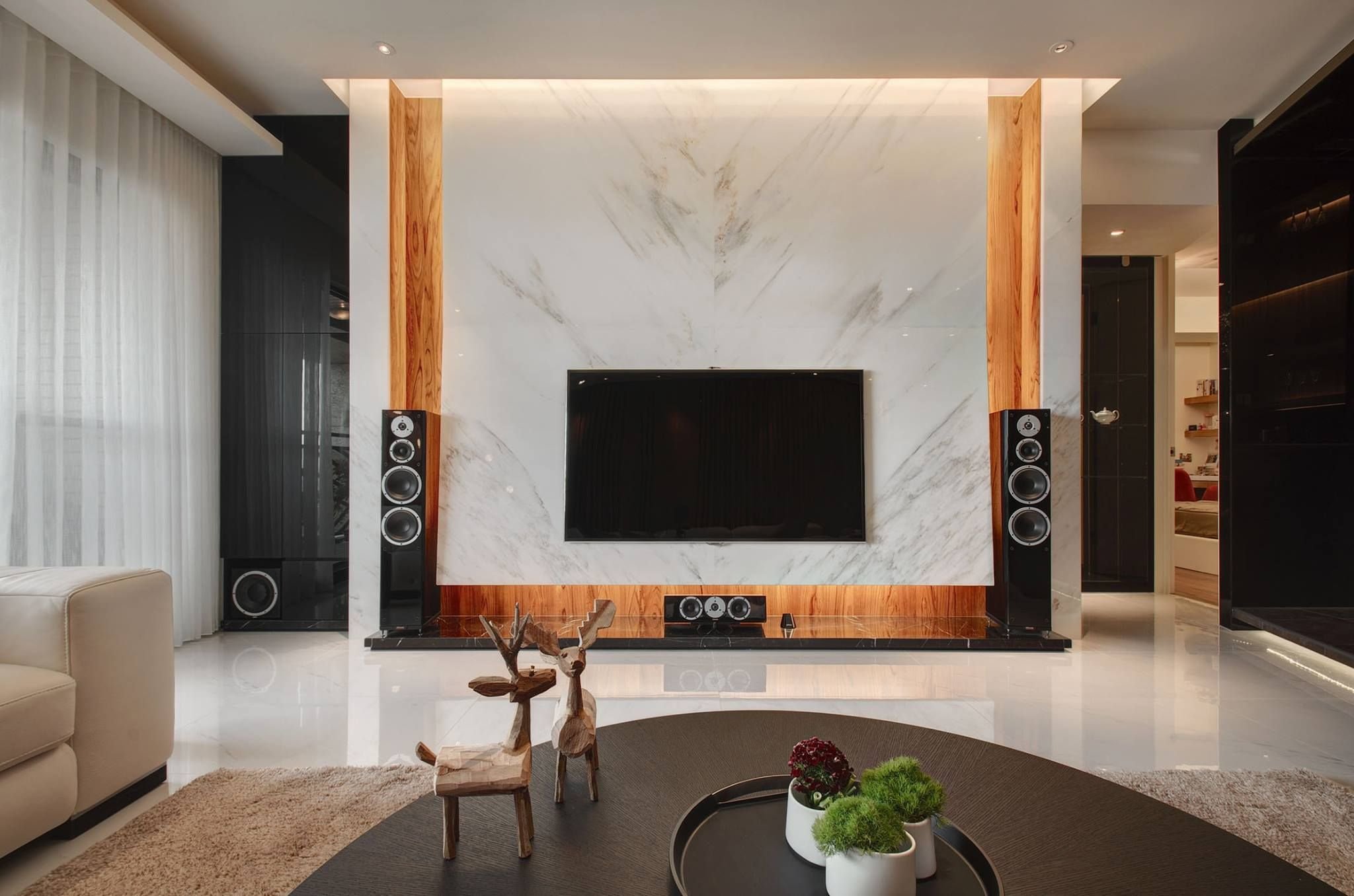 Мраморная стена в гостиной