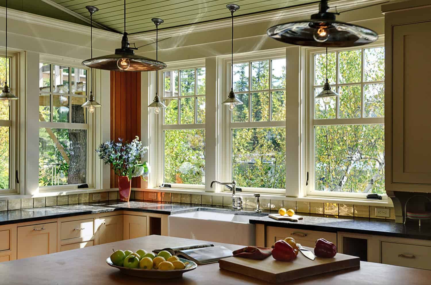 Кухня на даче с большими окнами
