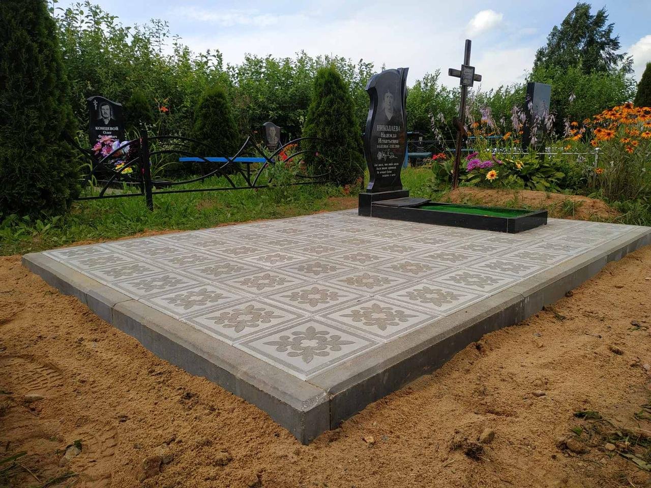 Благоустройство могилы тротув тротуарная плитка