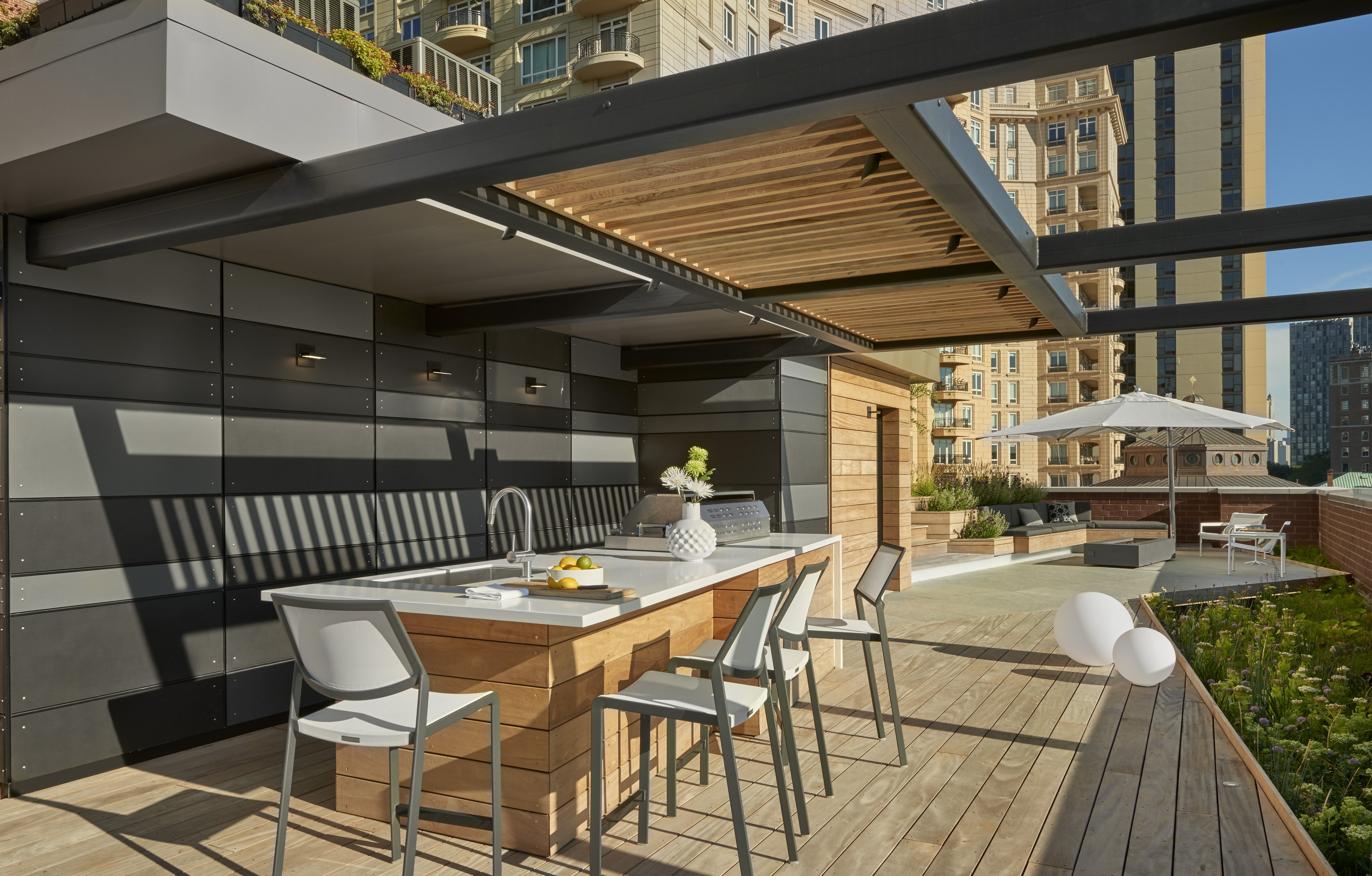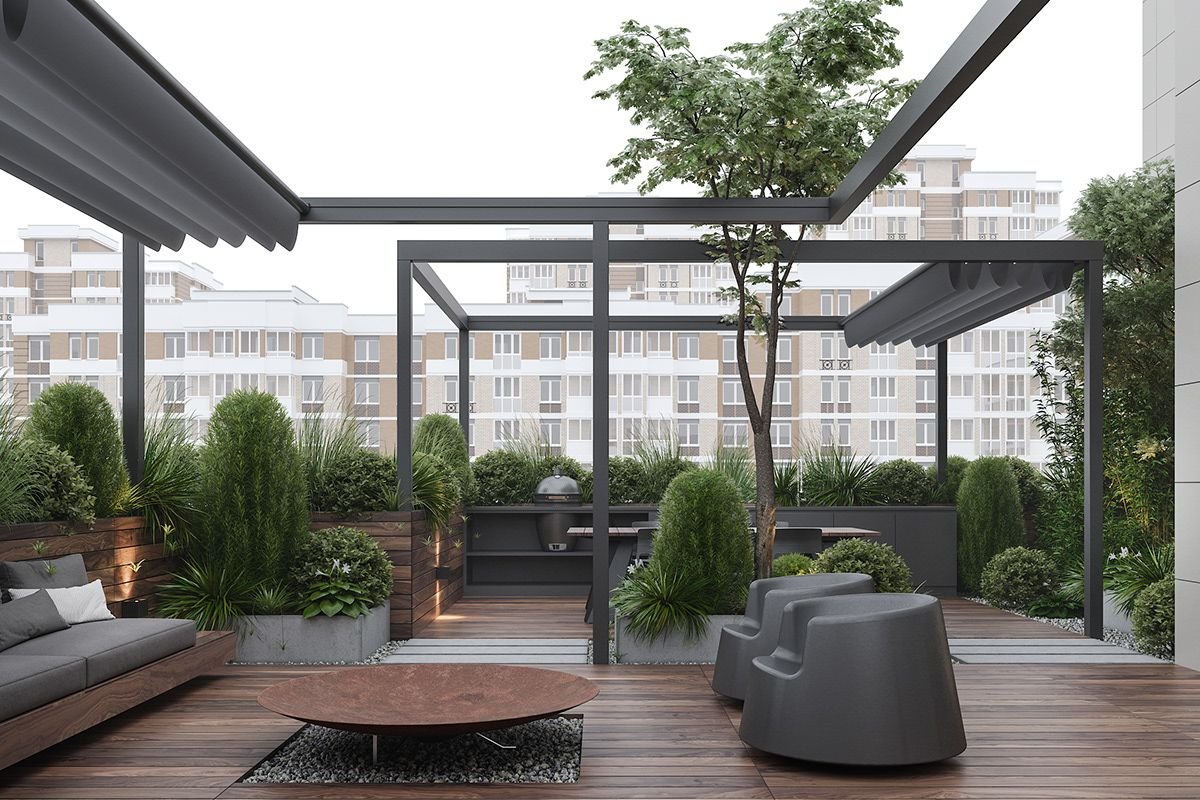 Пергола на крыше многоэтажки