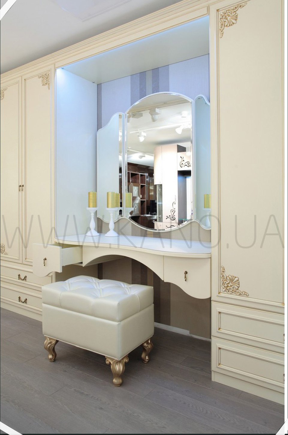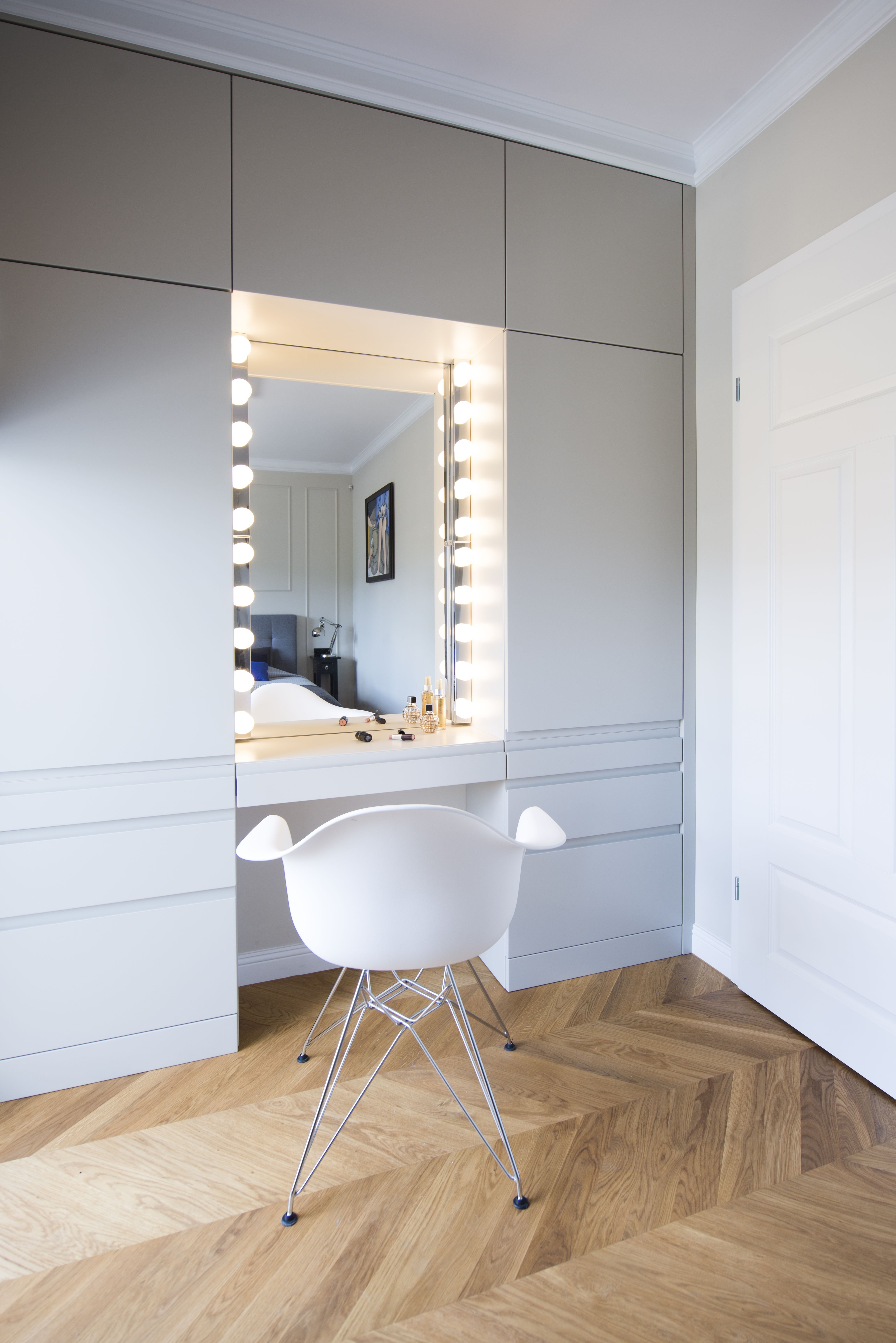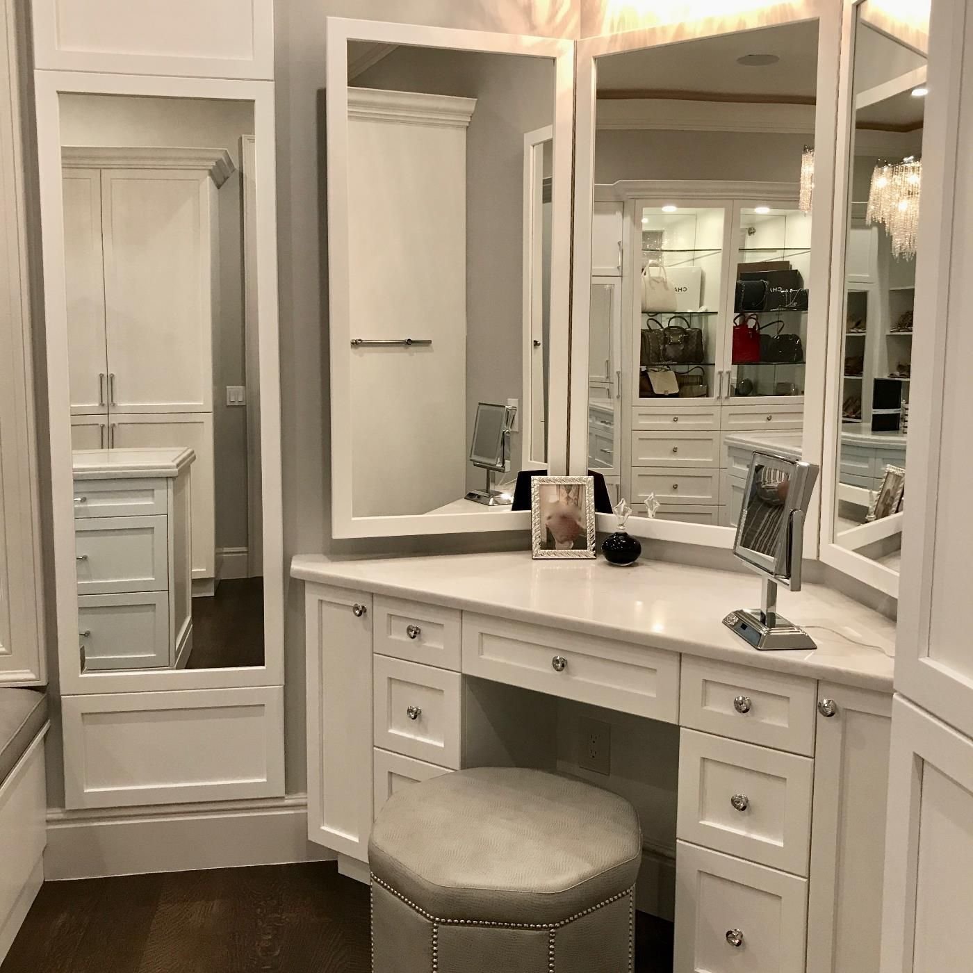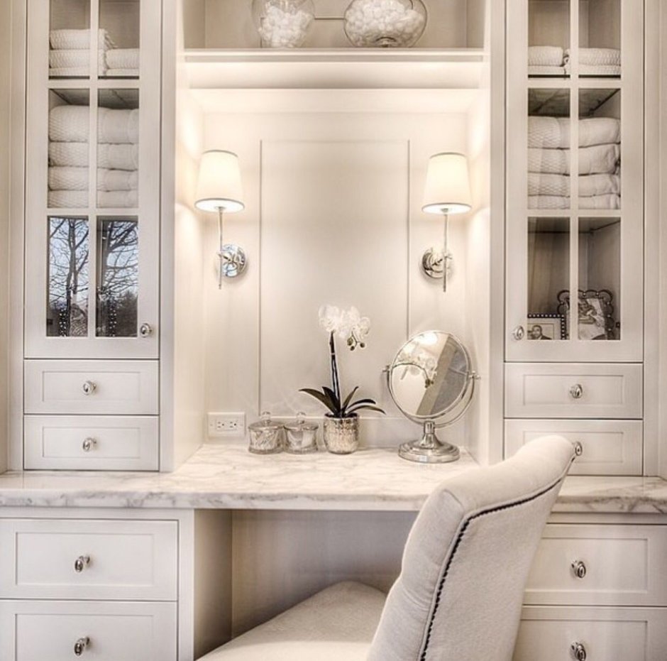 Гардеробная с туалетным столиком и зеркалом