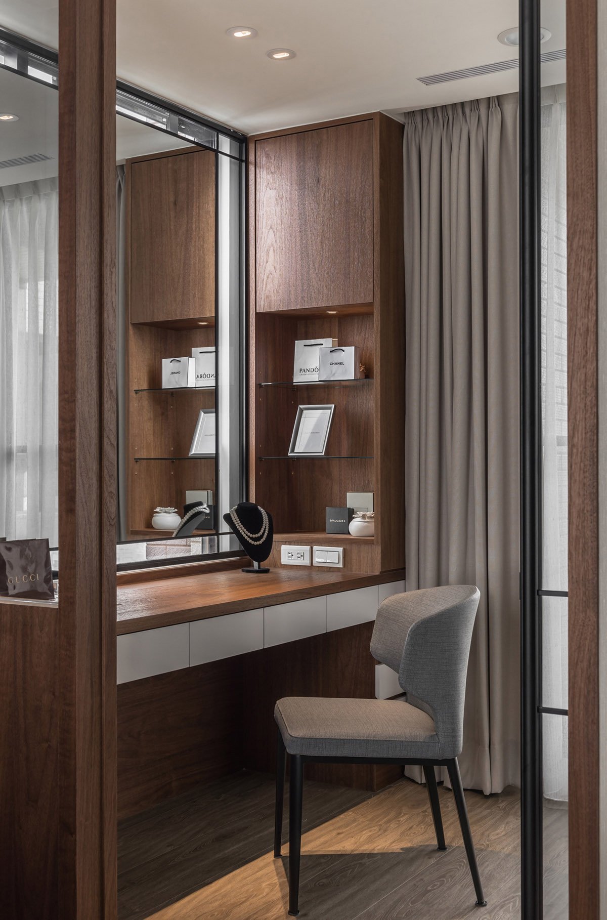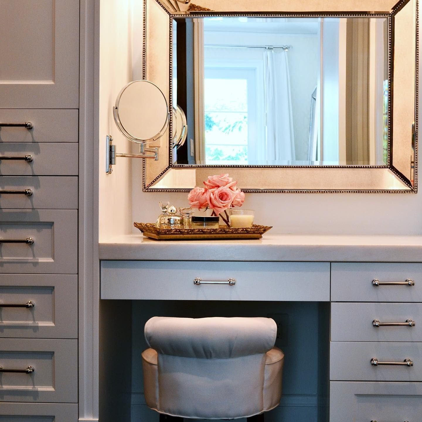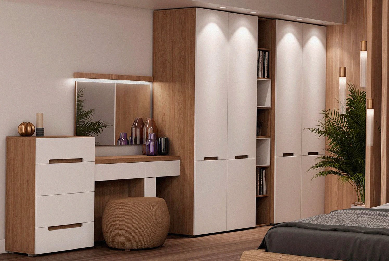 Гардеробная с туалетным столиком и зеркалом