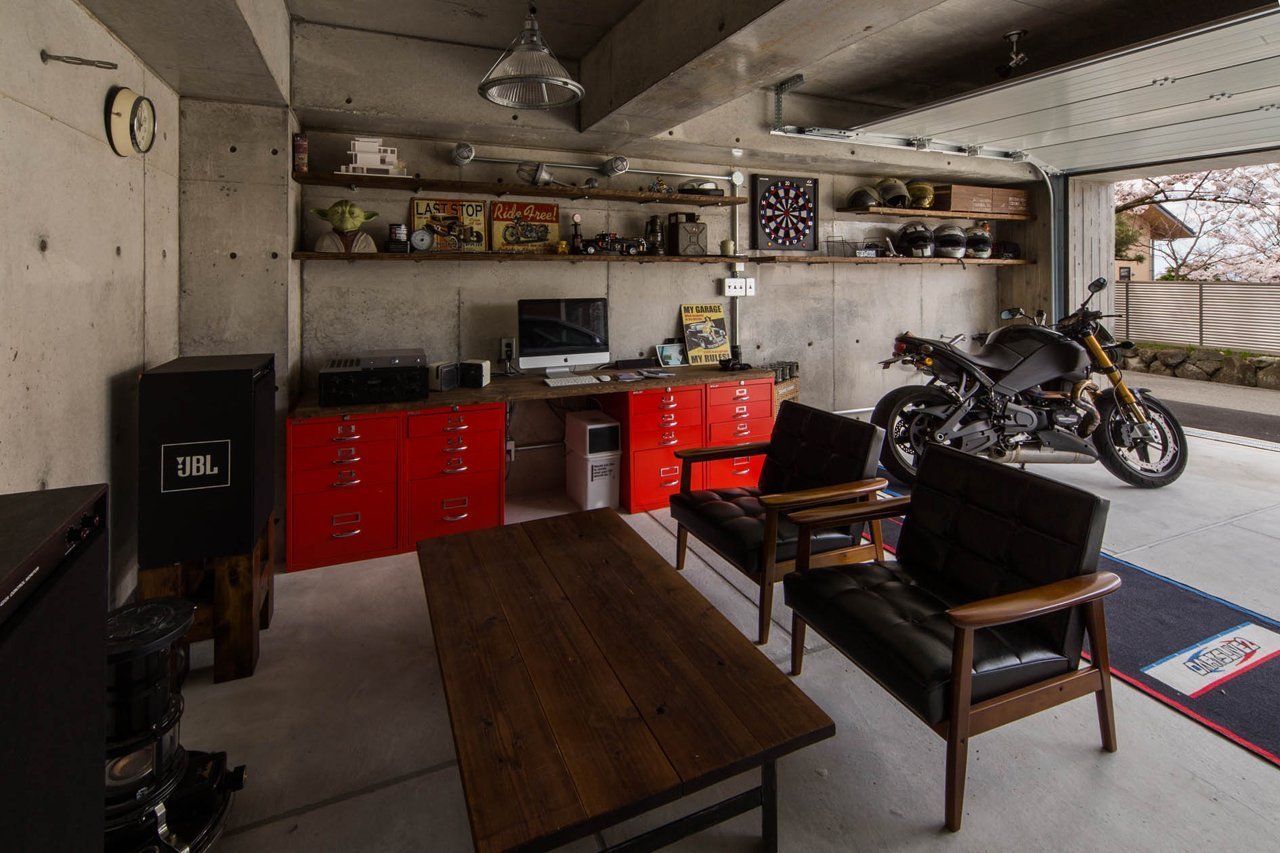 Интерьер гаража с зоной отдыха