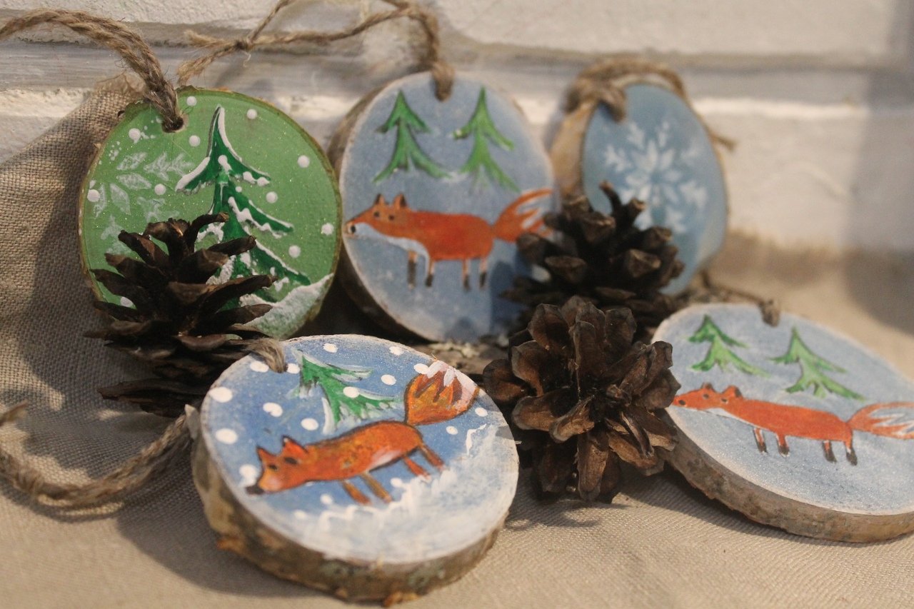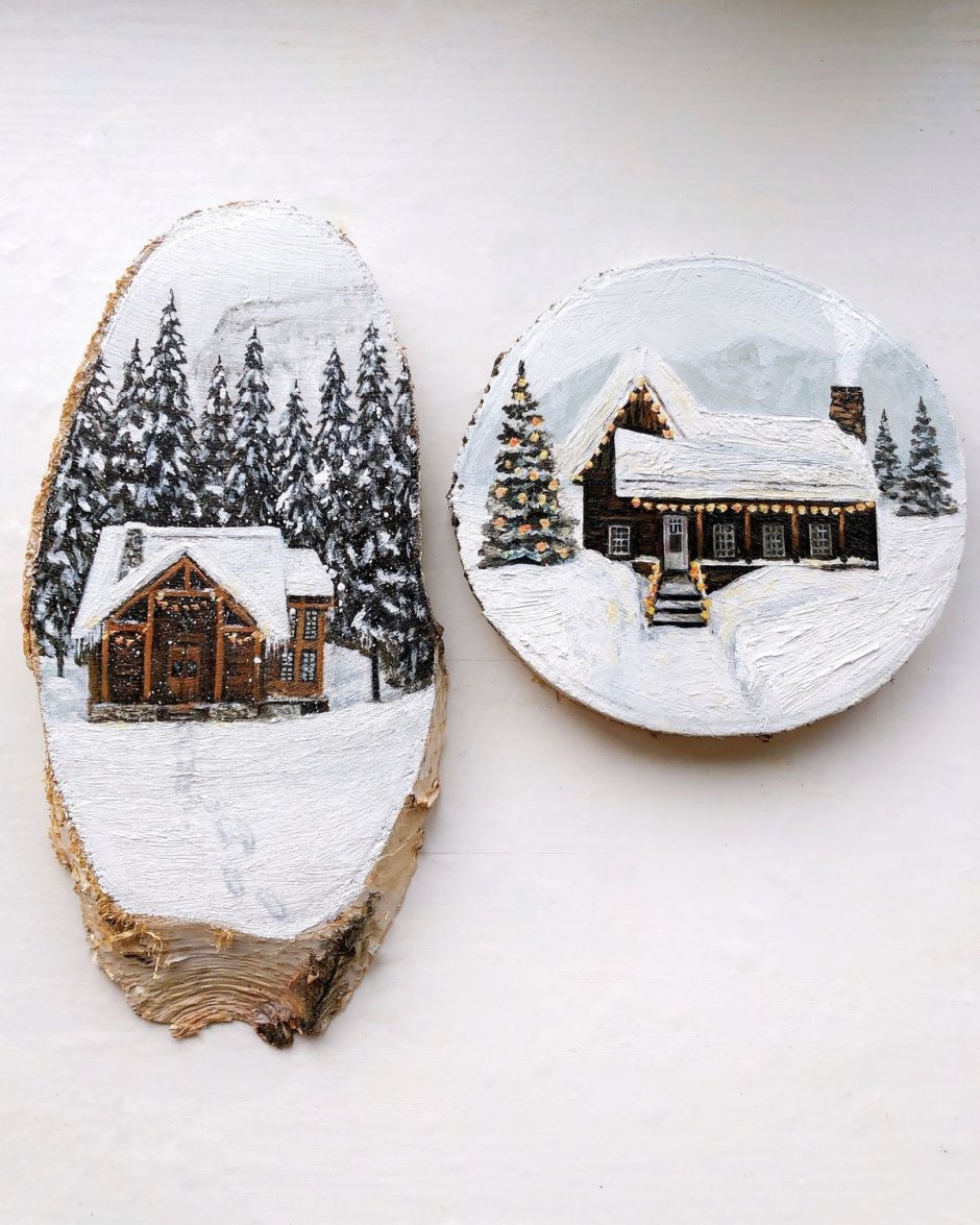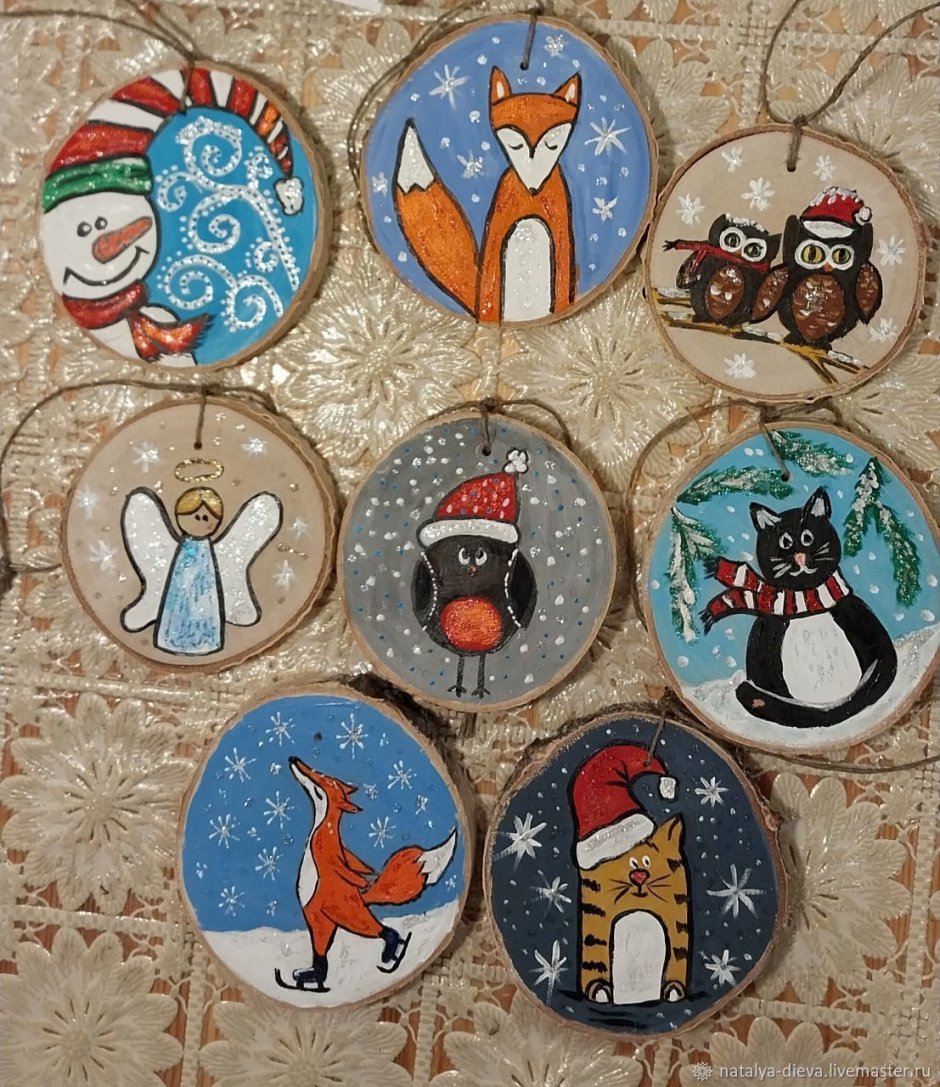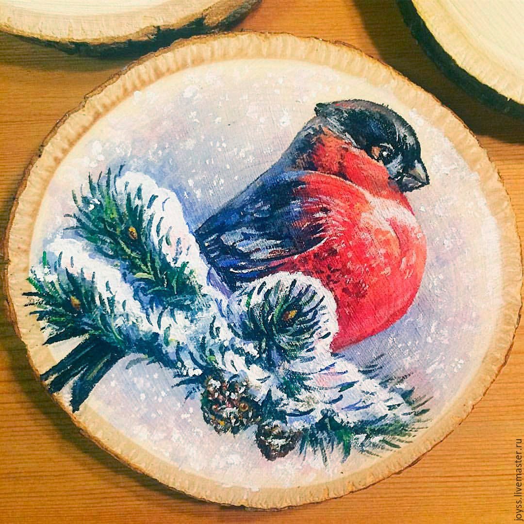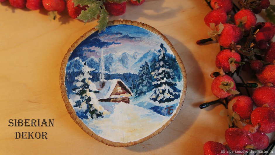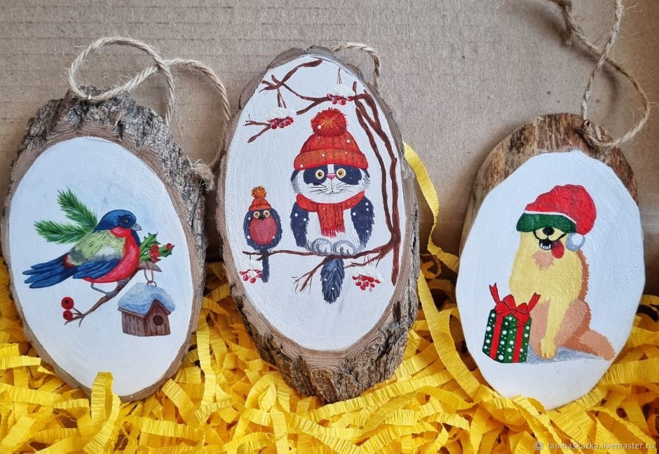 Роспись деревянных спилов новый год