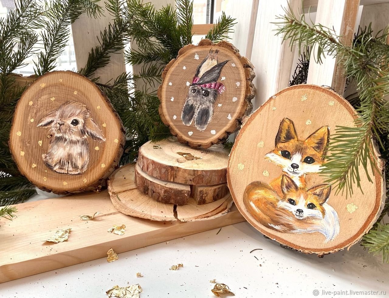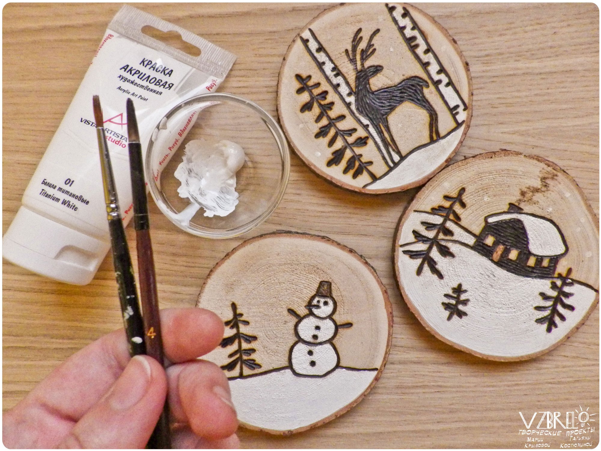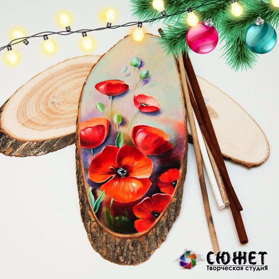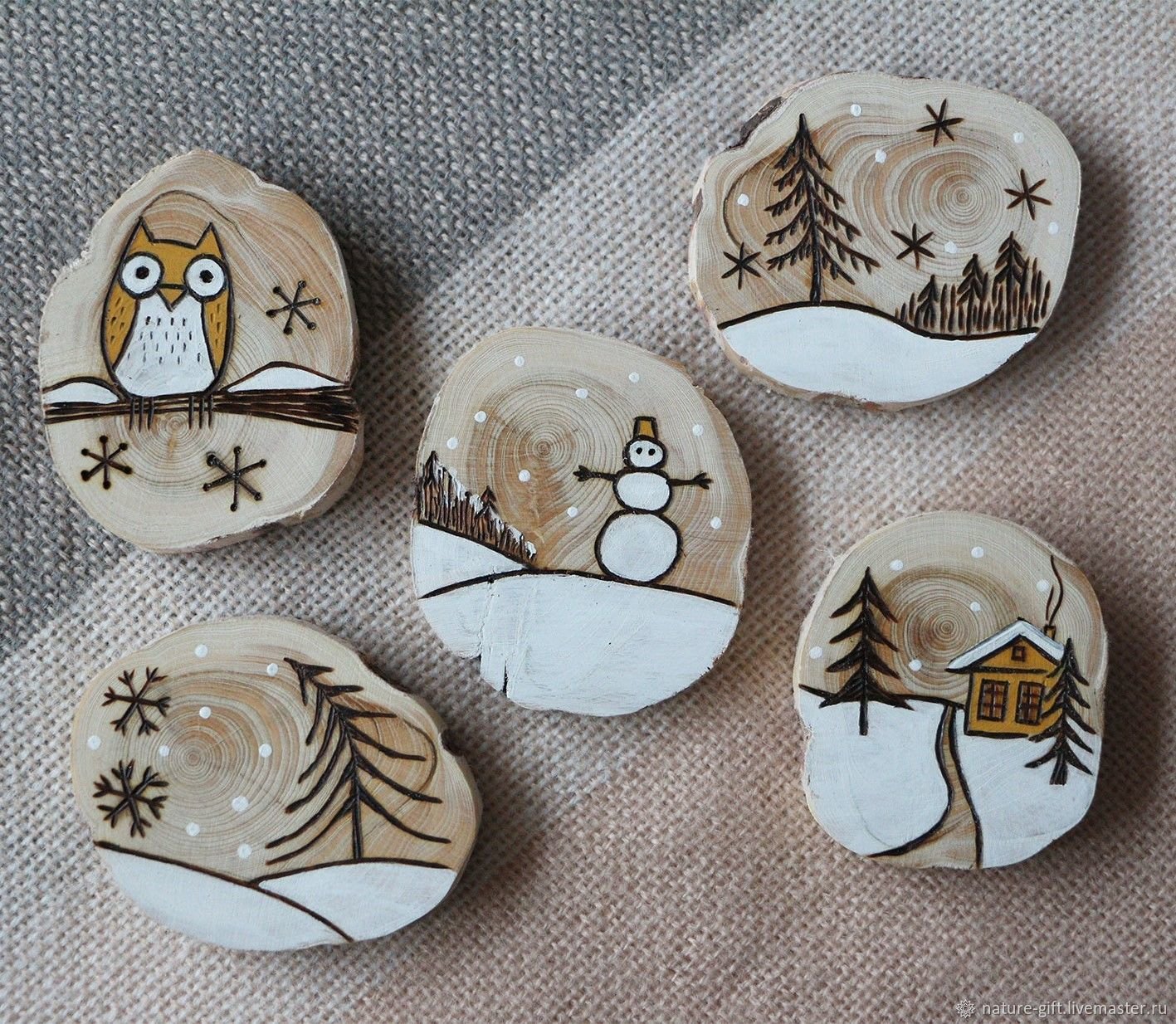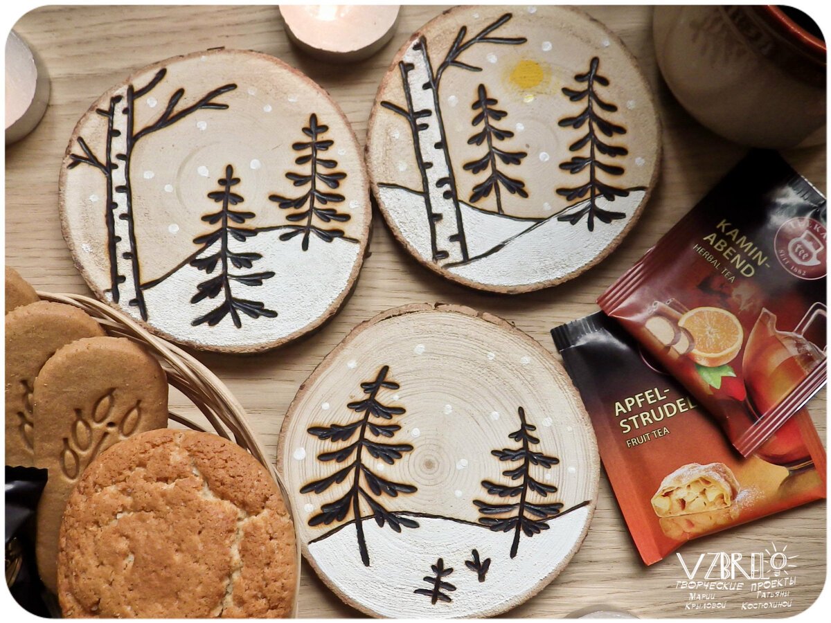 Роспись деревянных спилов новый год