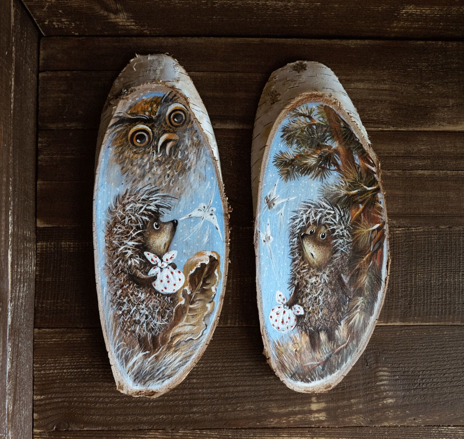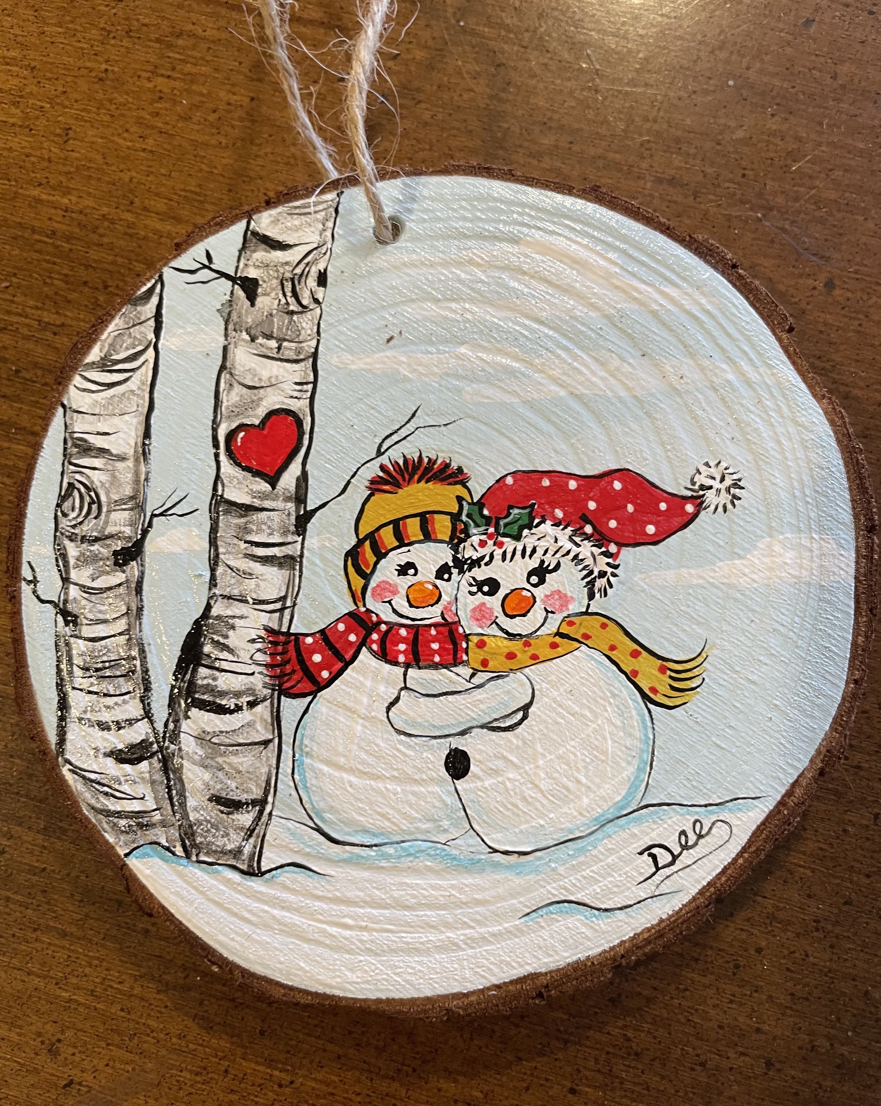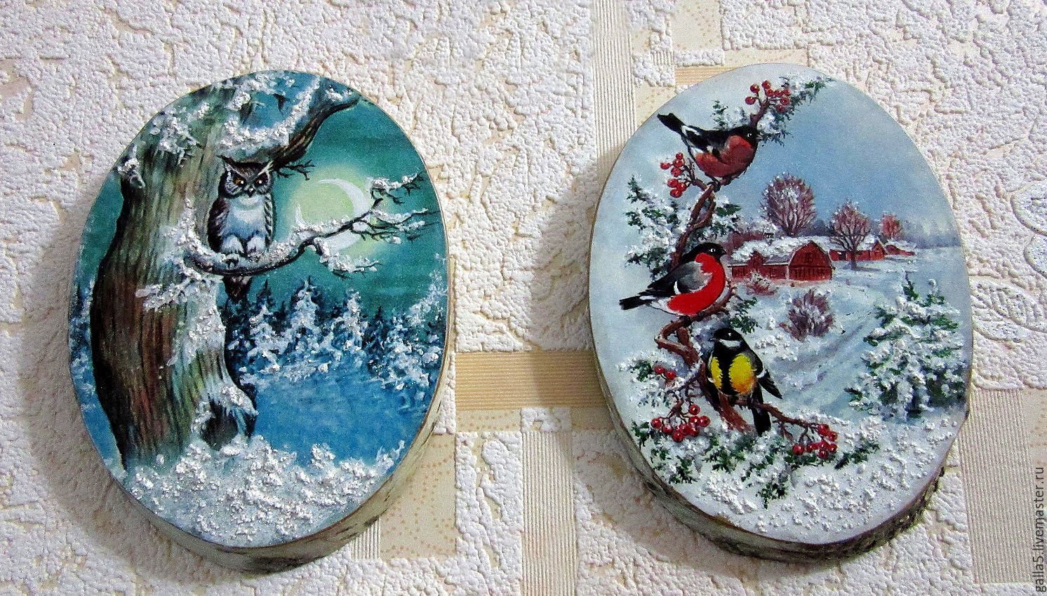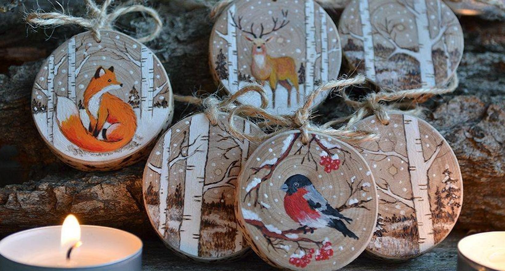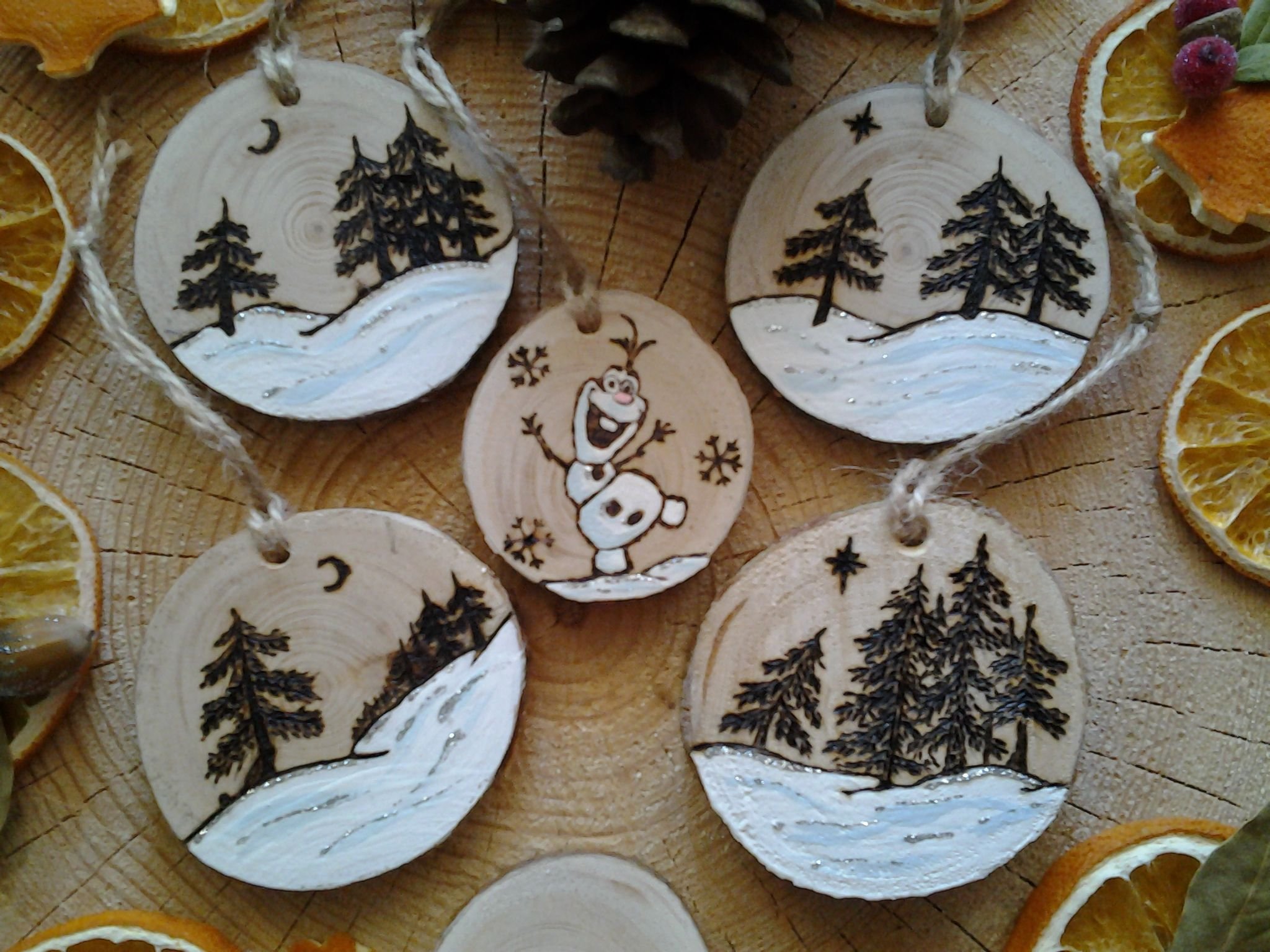 Роспись деревянных спилов новый год