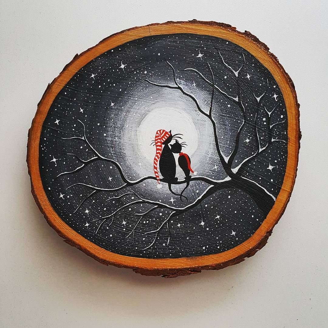 Роспись на срезе дерева