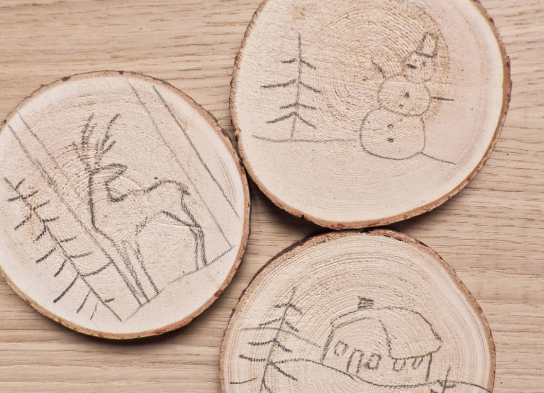 Выжигание на спиле дерева новогодние