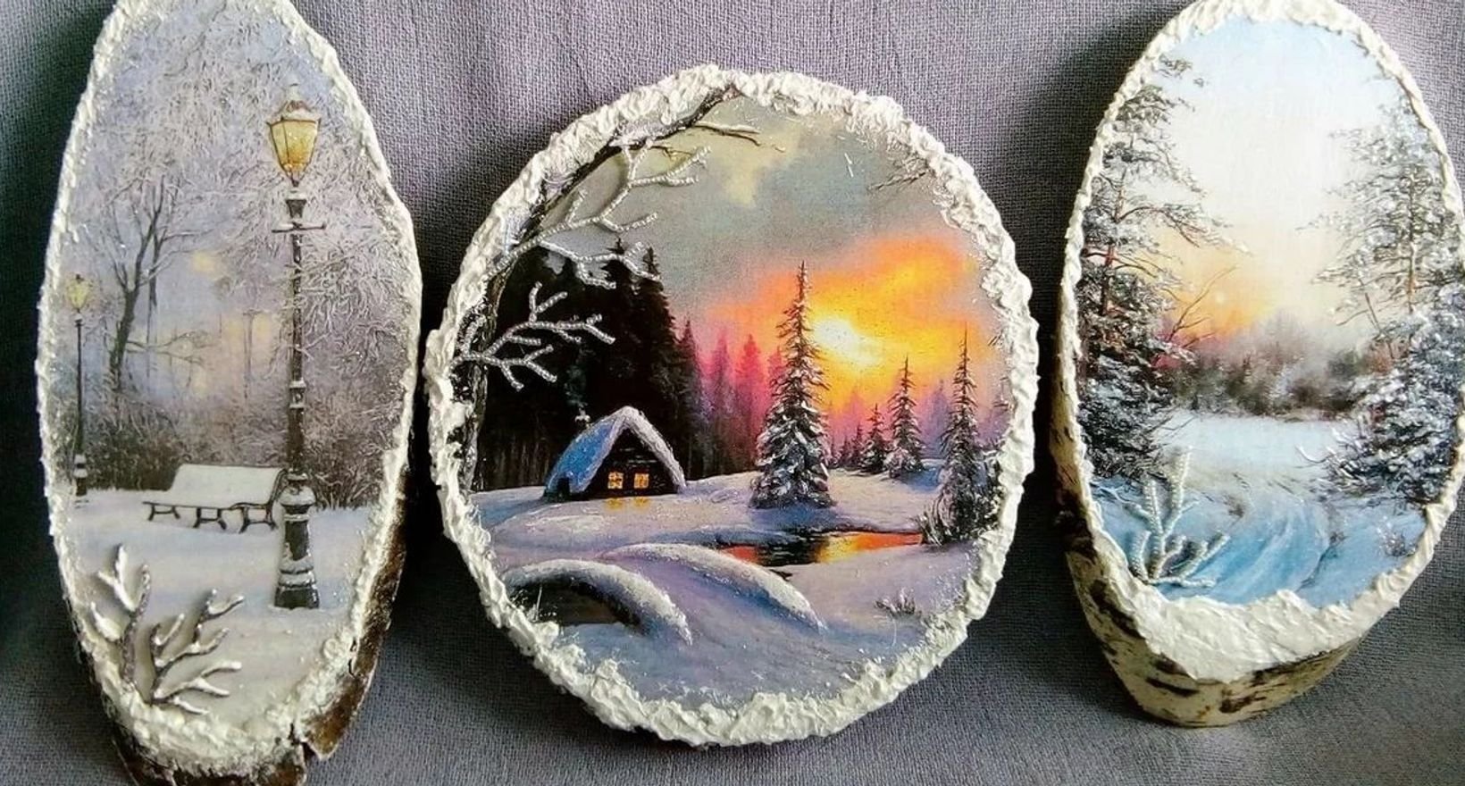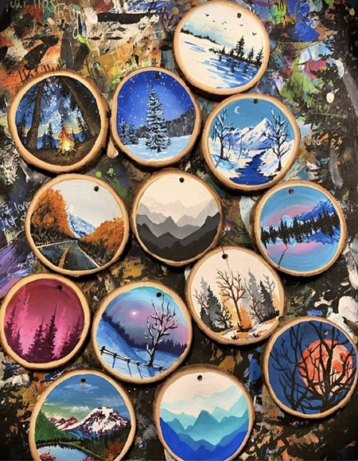 Новогодняя роспись на маленьких спилах