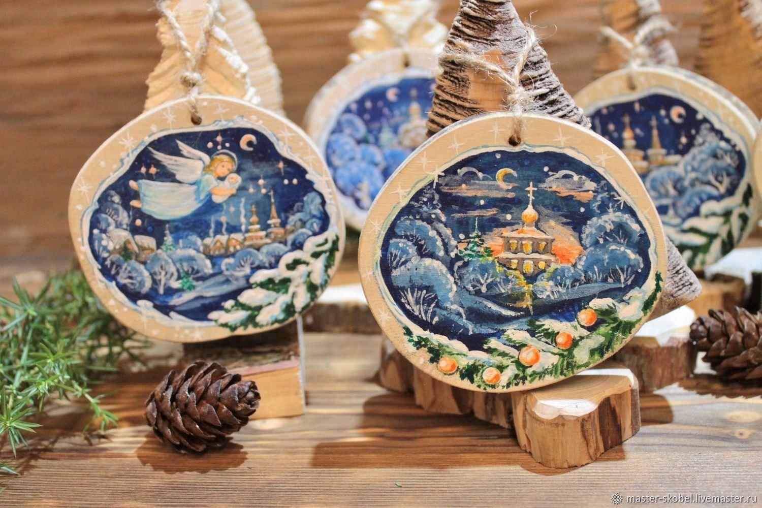 Елочные игрушки на спилах