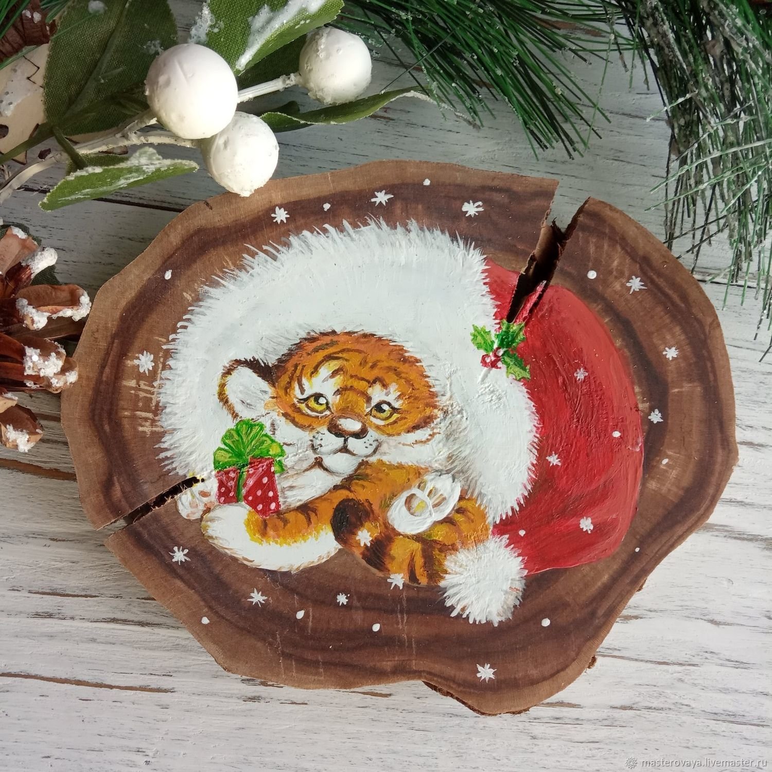 Роспись на спиле дерева Новогодняя