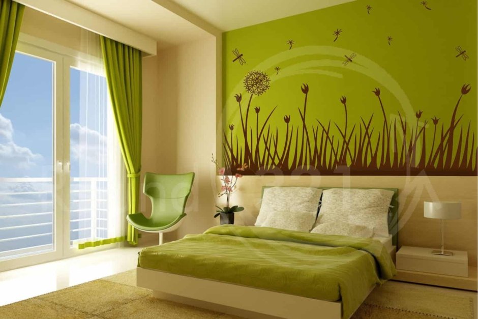Спальня в салатовом цвете
