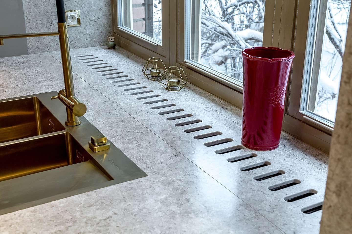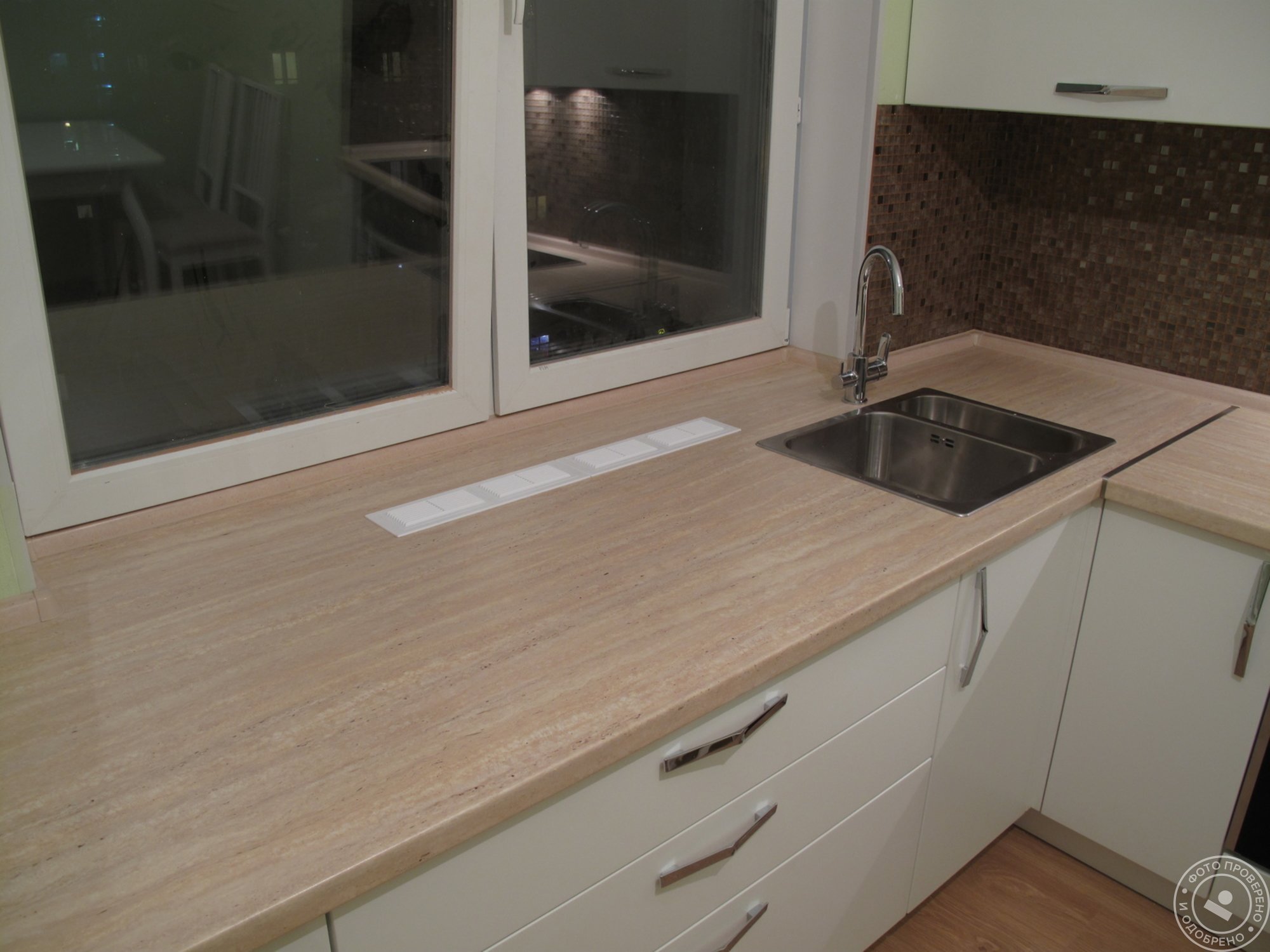 Кухонная столешница переходящая в подоконник