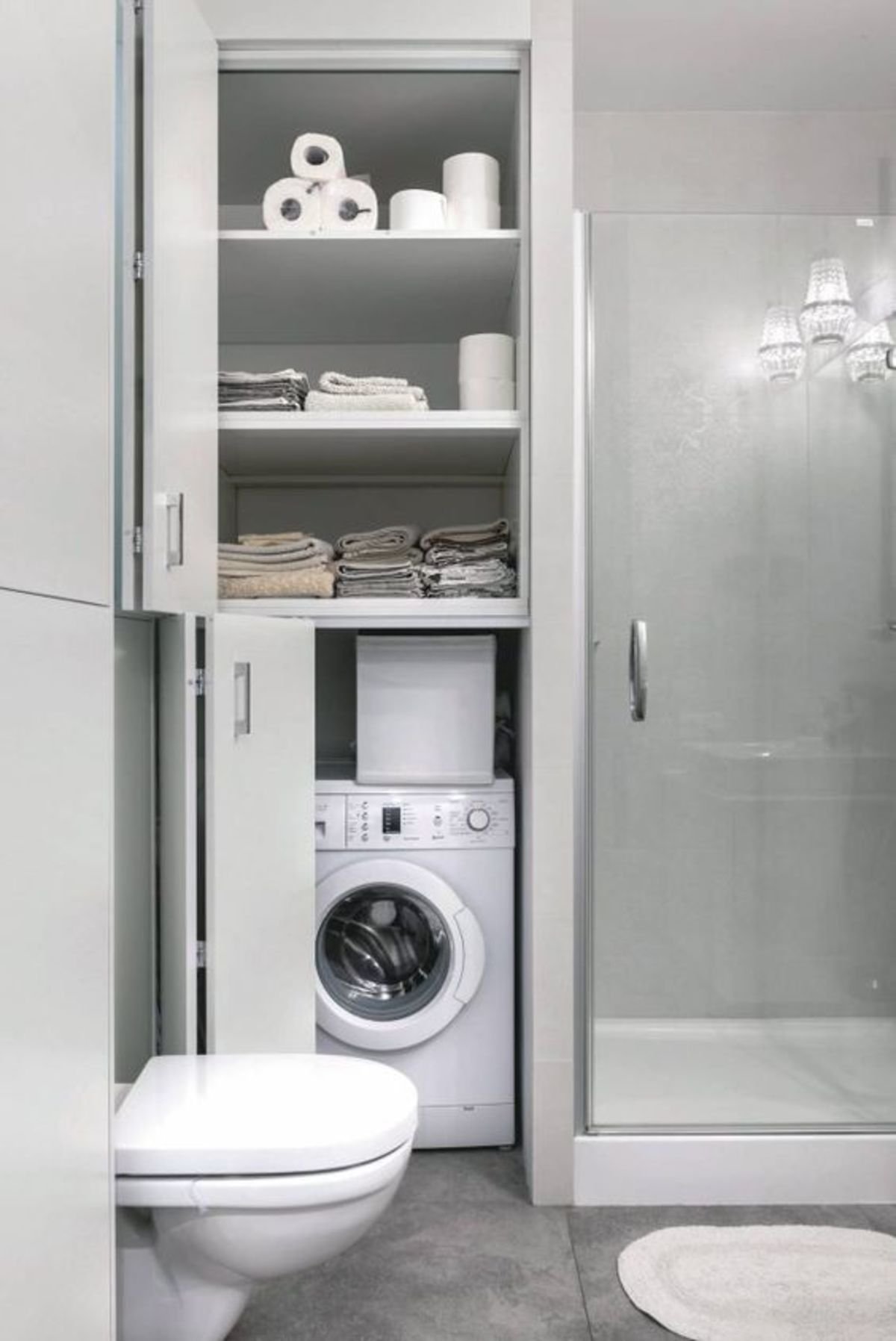 Встроенный шкаф для стиральной машины в ванной