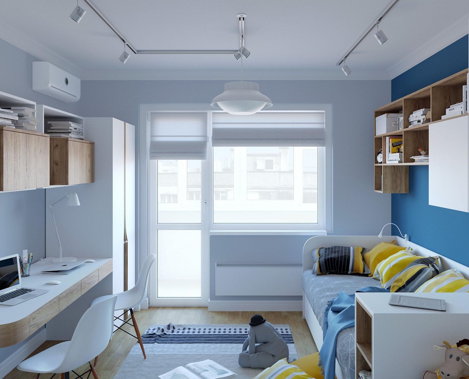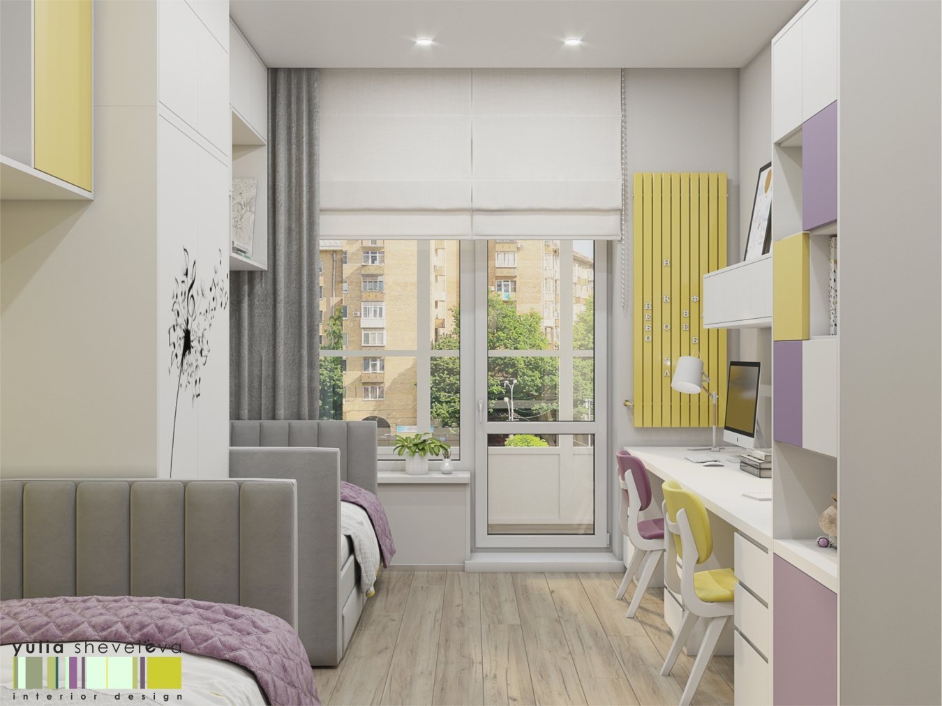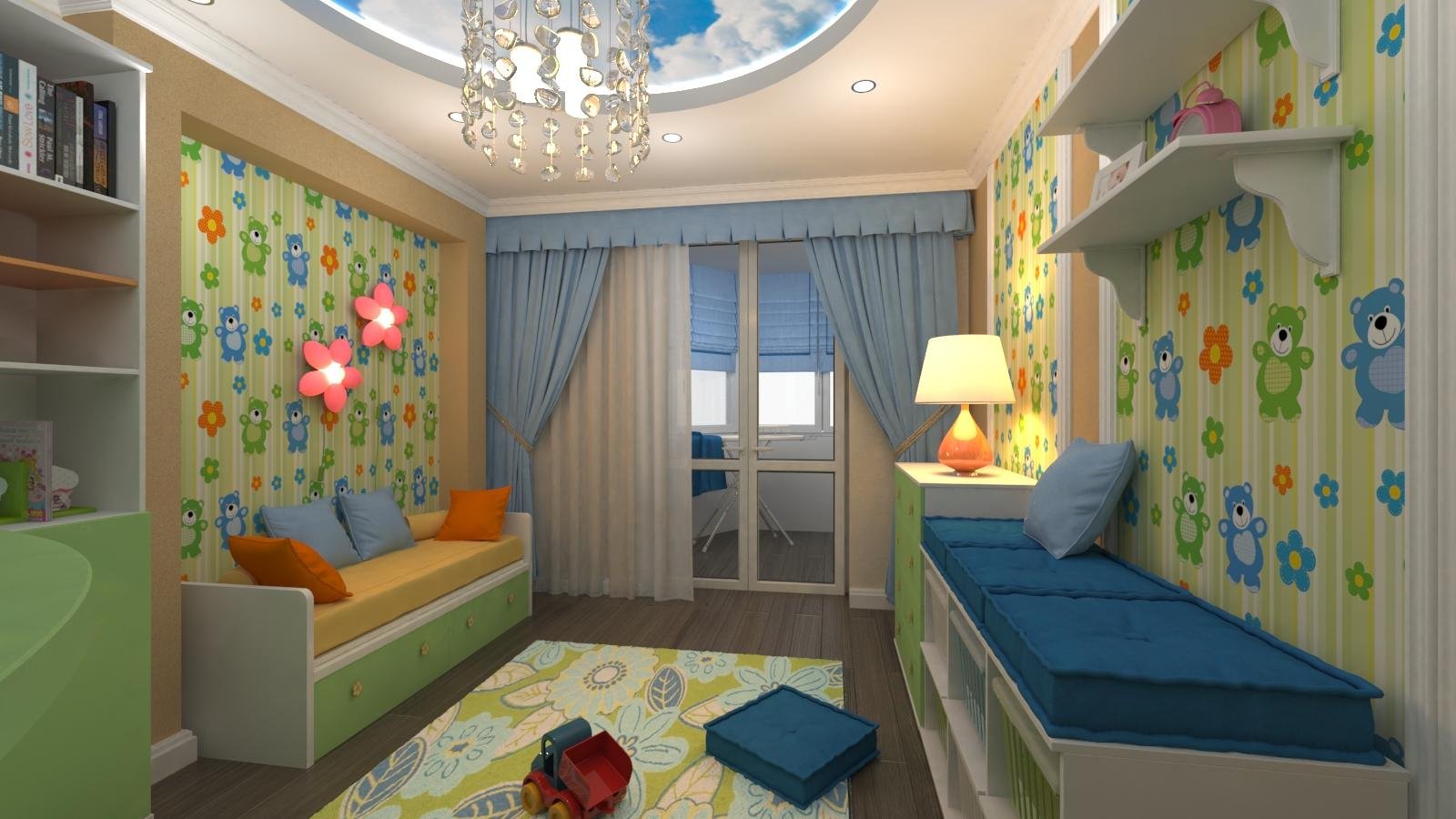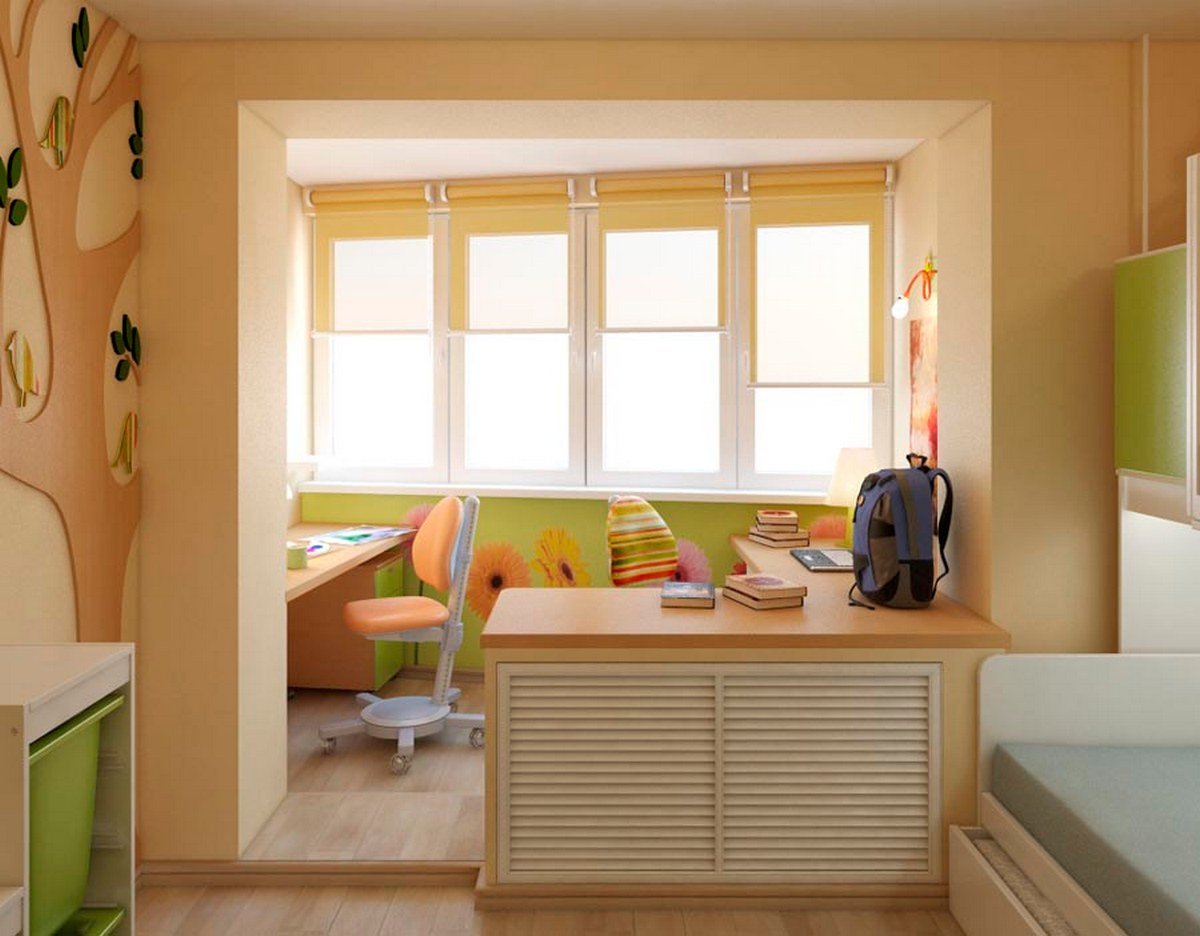Дизайн детской комнаты для двоих с балконом