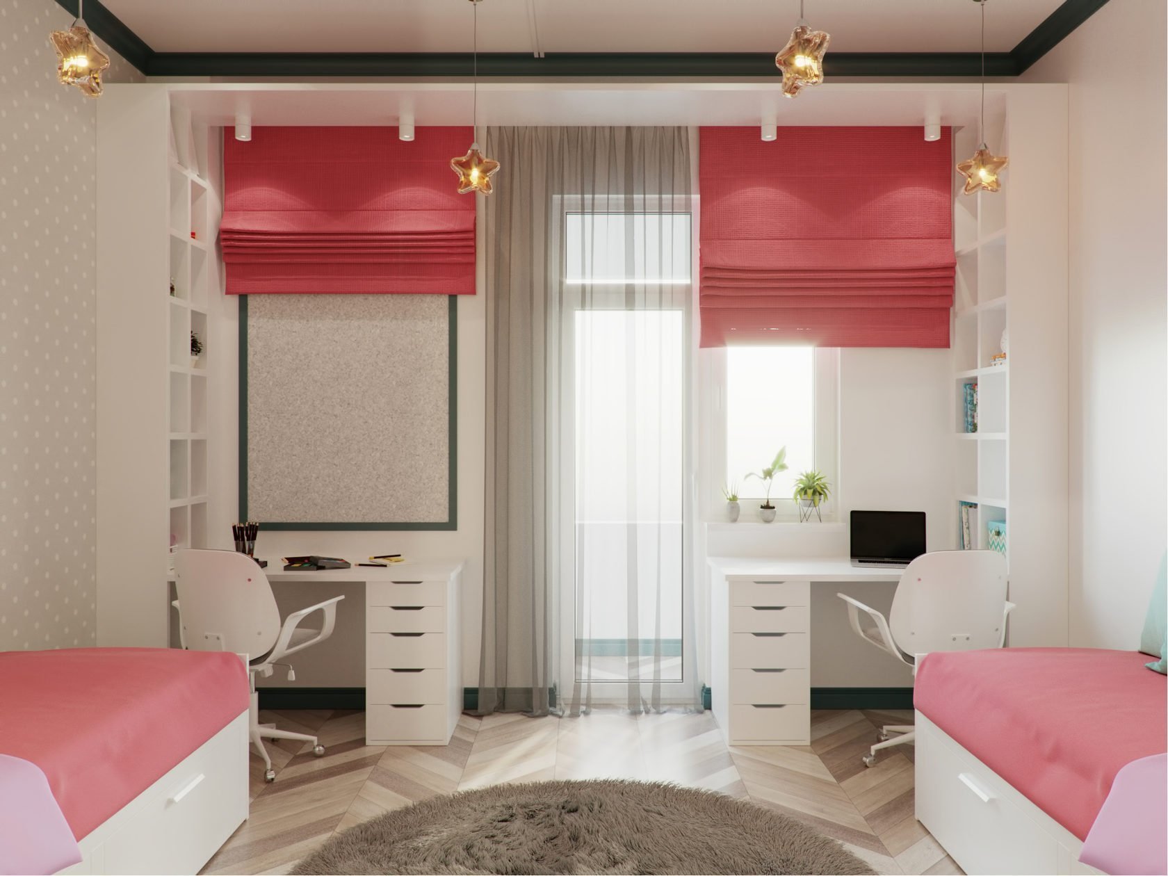 Зонирование детской комнаты для двух девочек