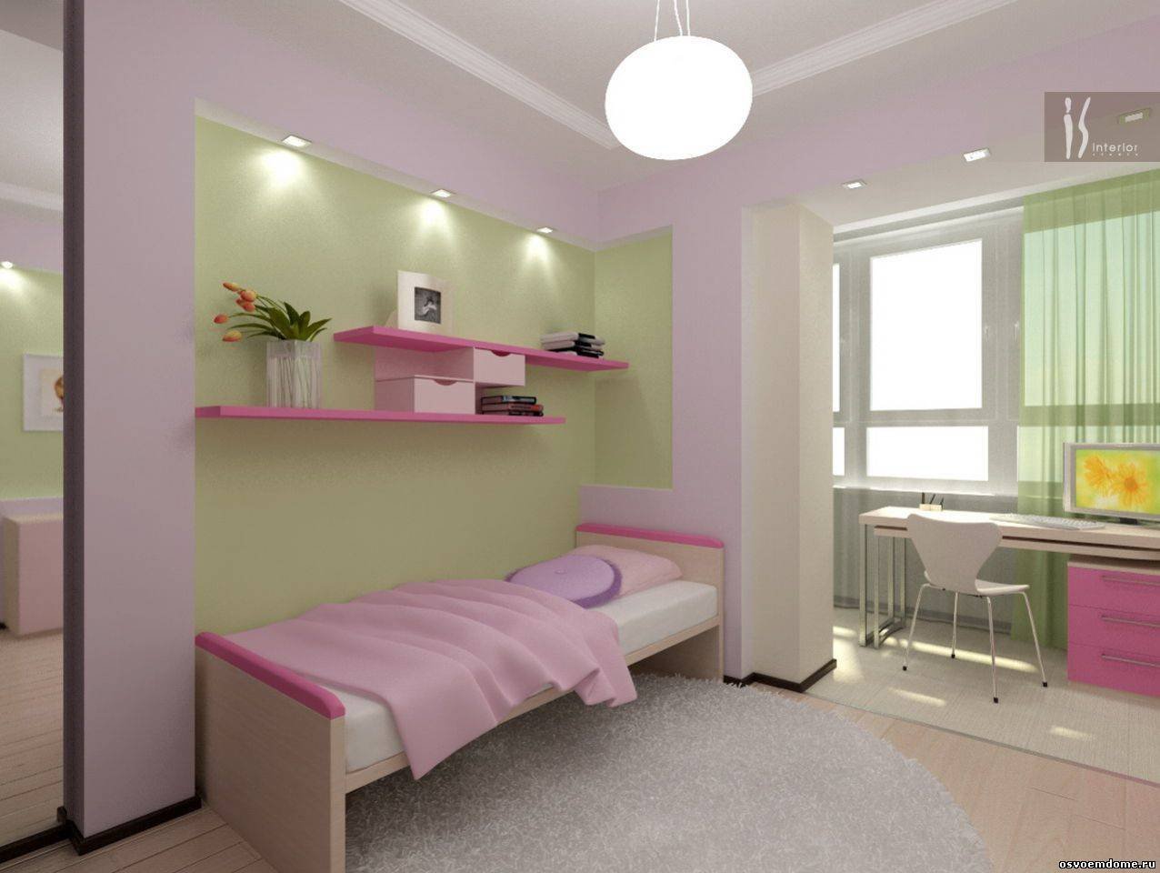 Зонирование детской комнаты для девочки