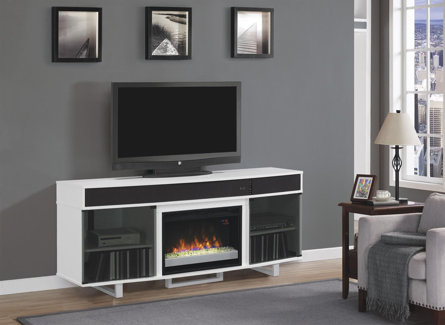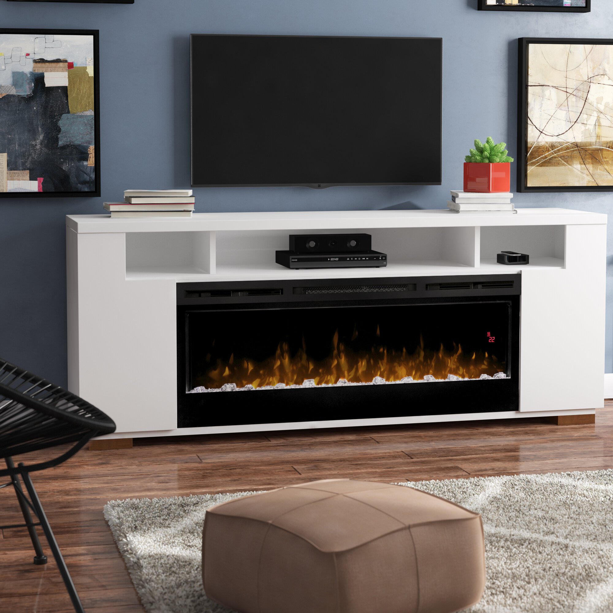 Тумба под телевизор с камином в современном стиле