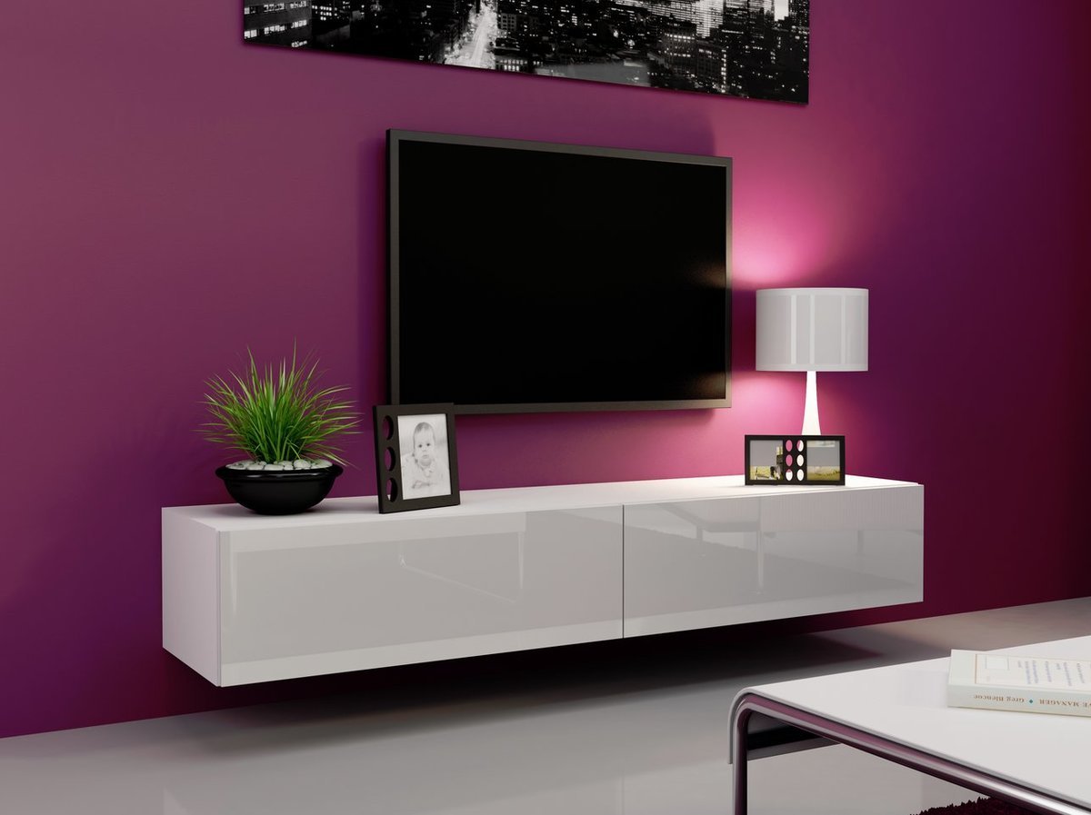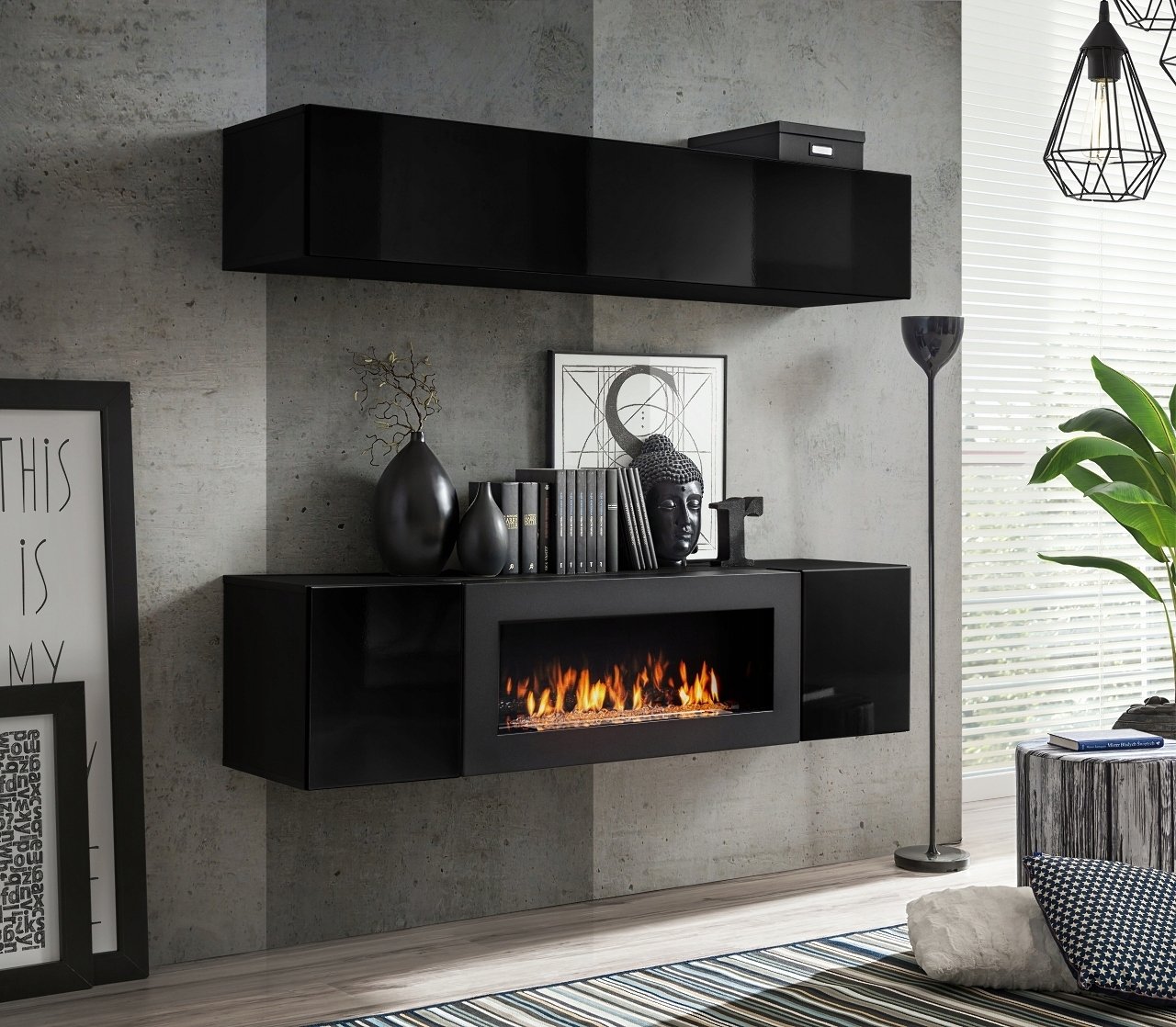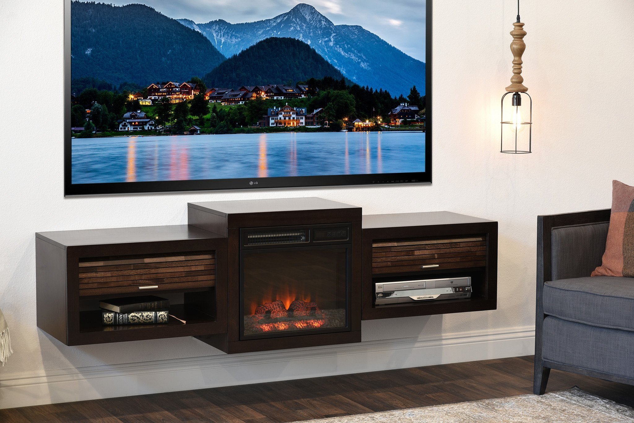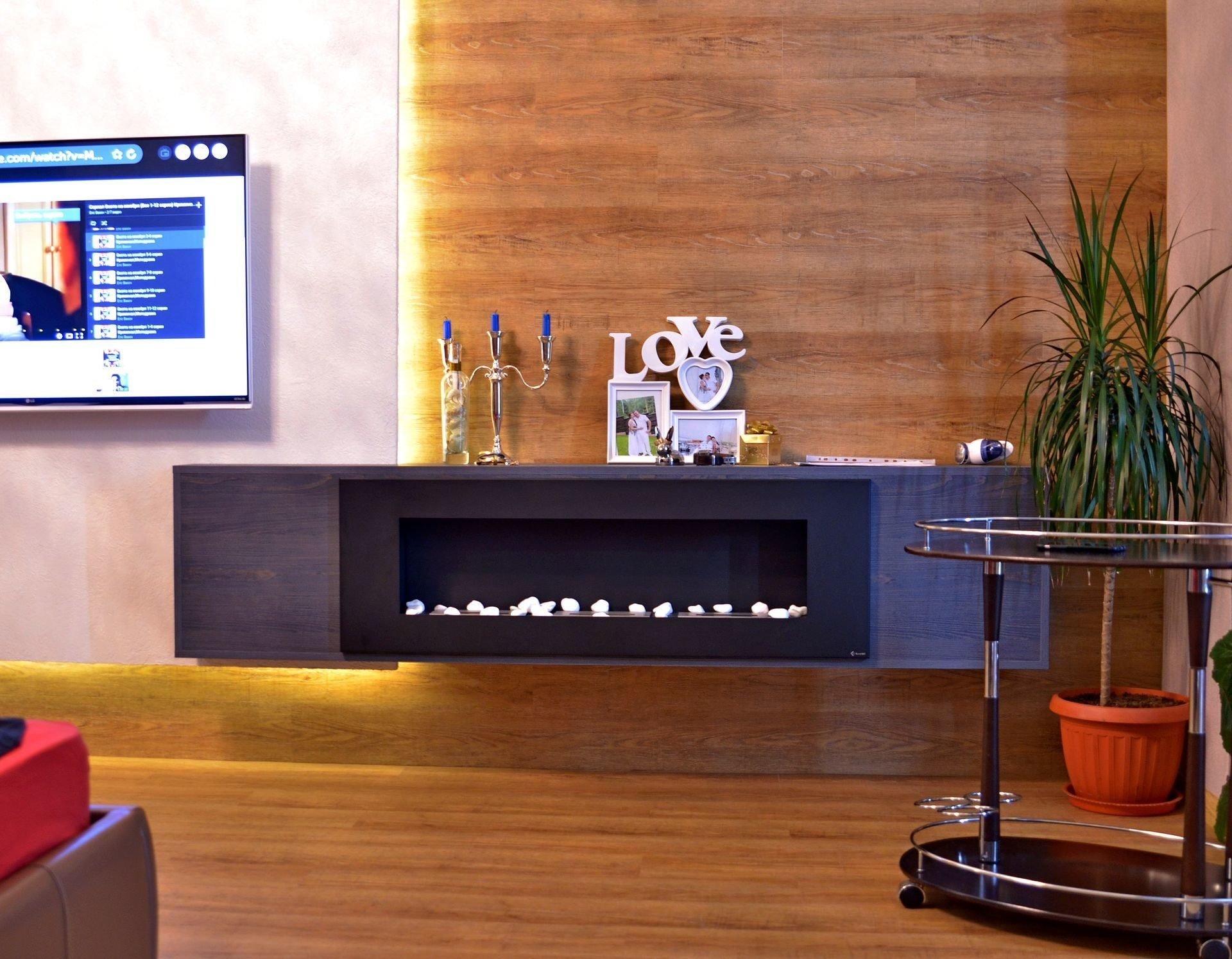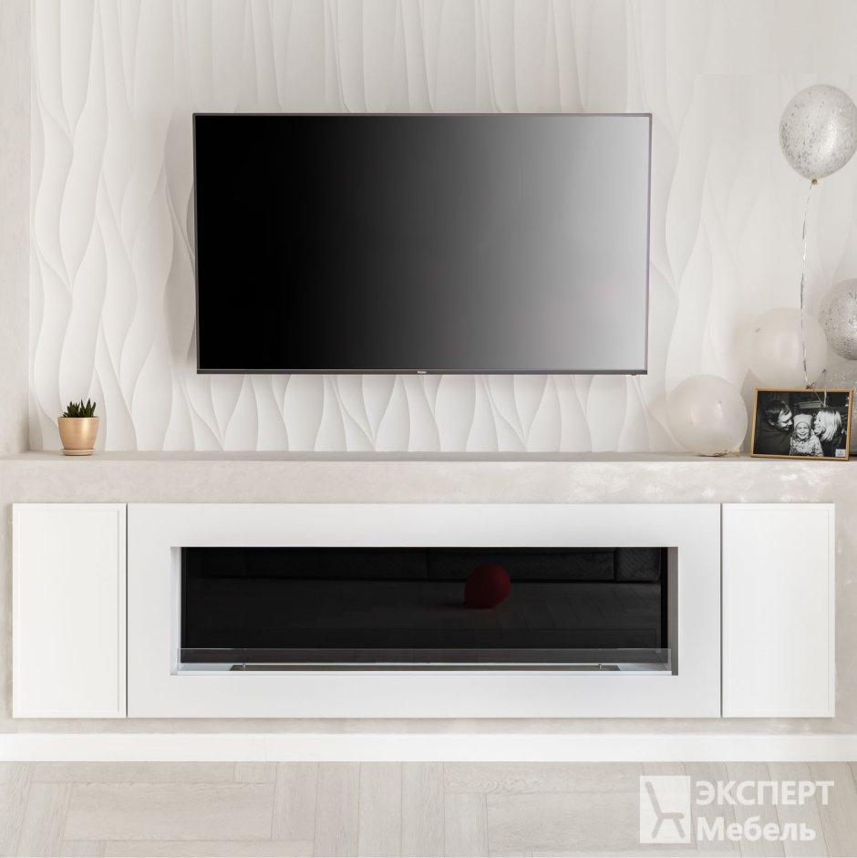 Подвесная тумба под телевизор с камином