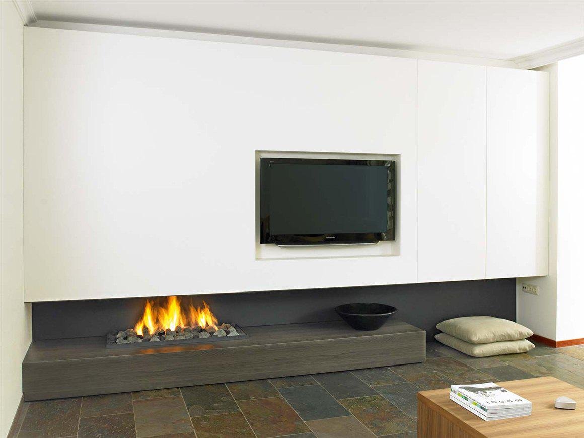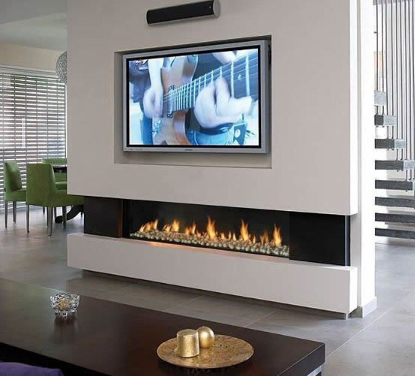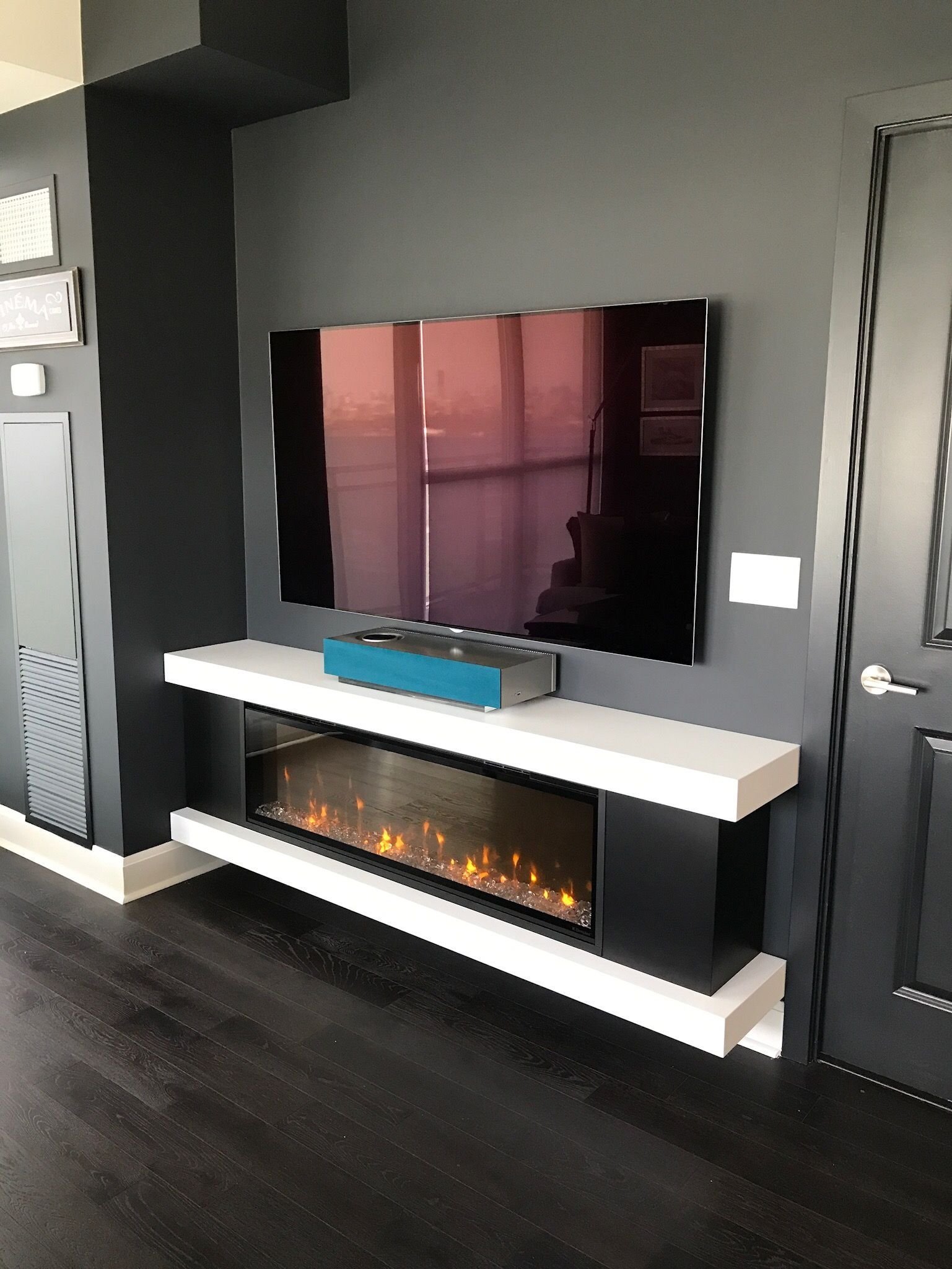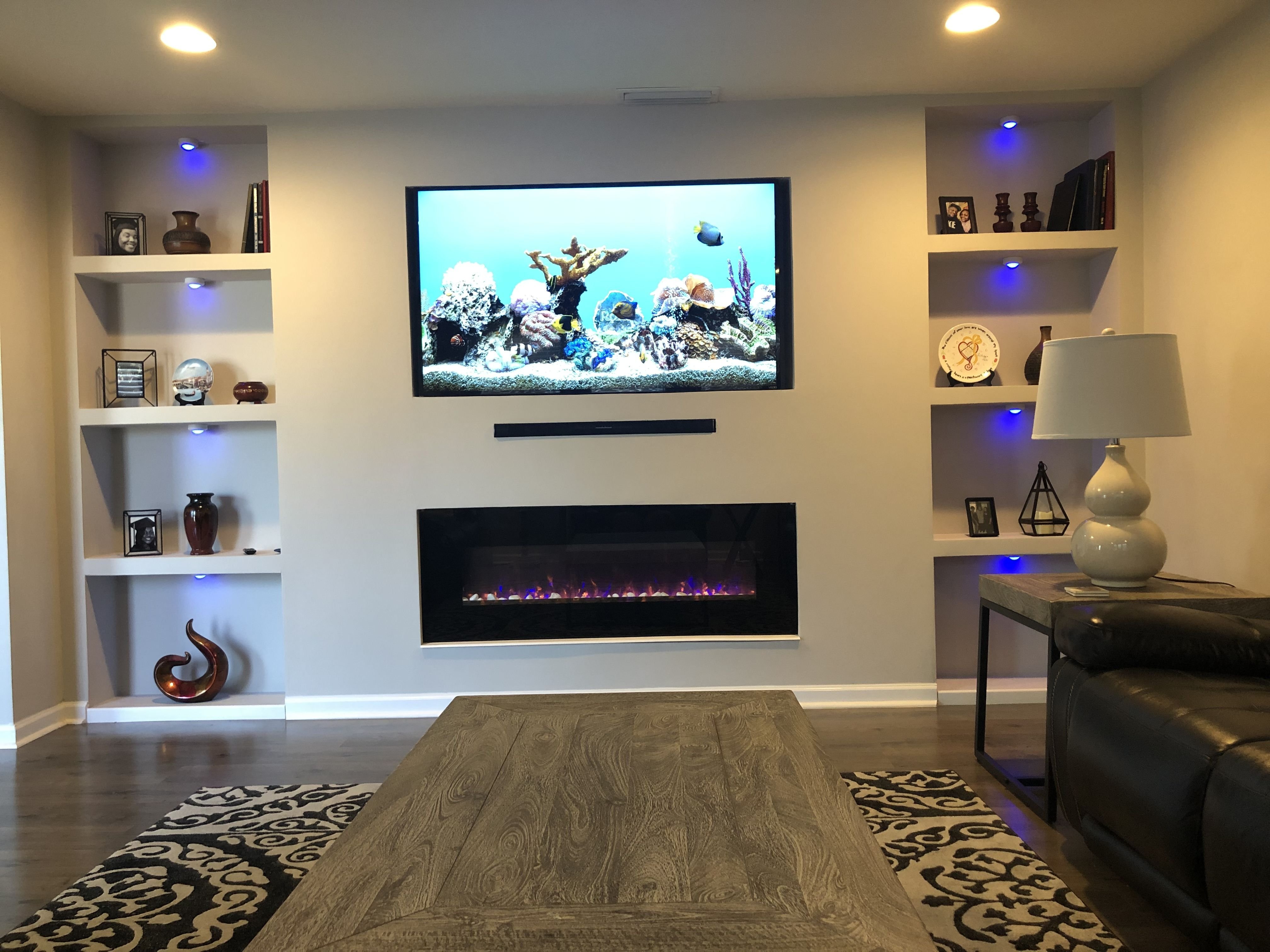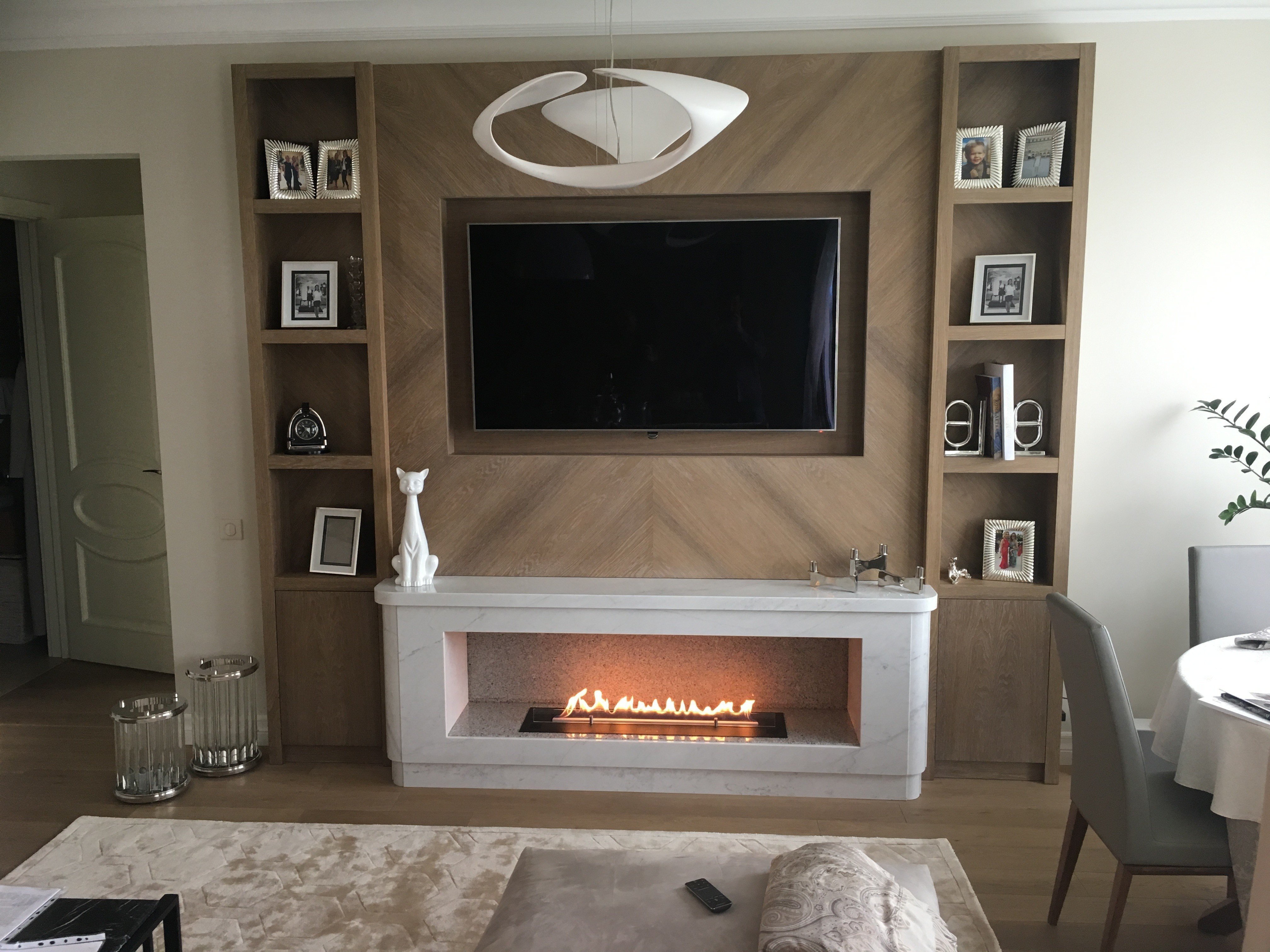 Современный встроенный камин под телевизор