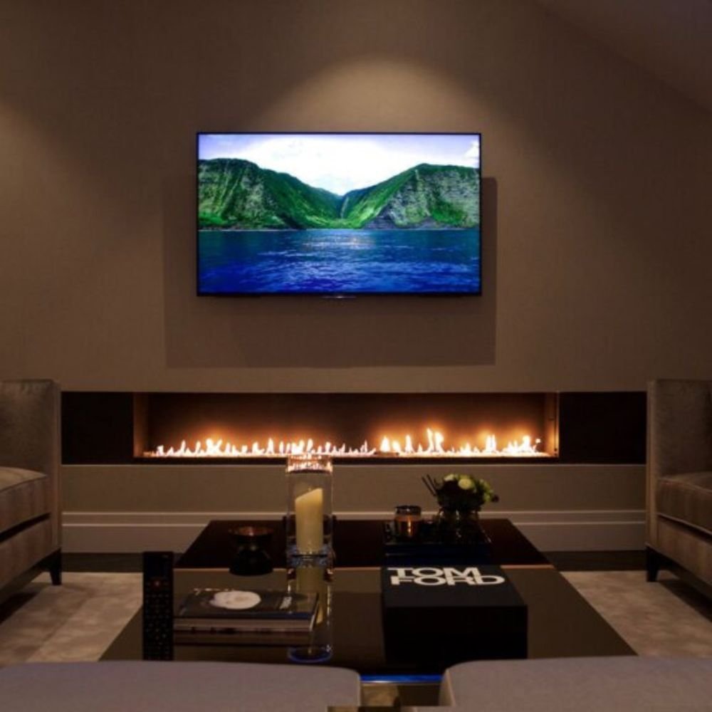 Камин под телевизором в гостиной