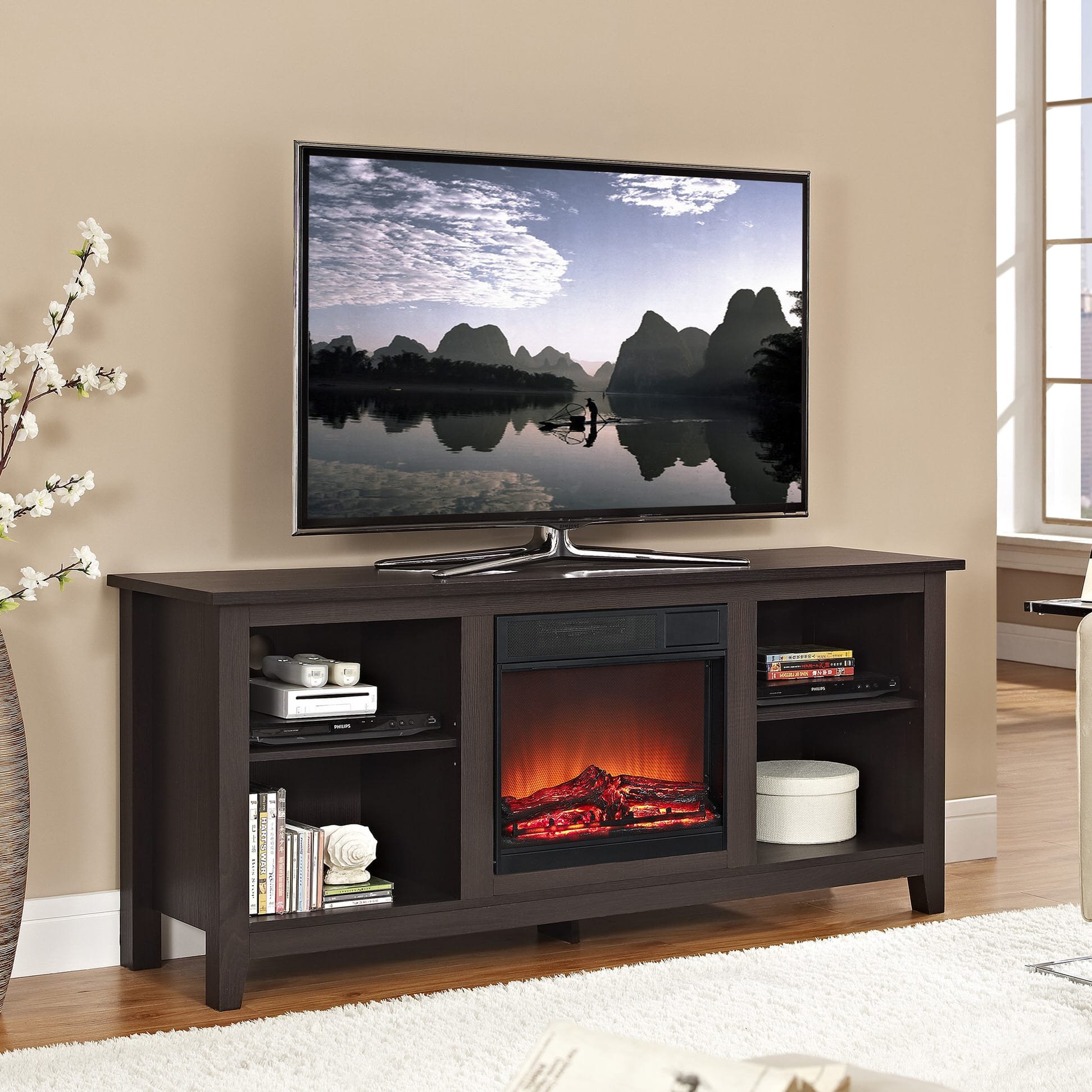 Электрокамин и телевизор
