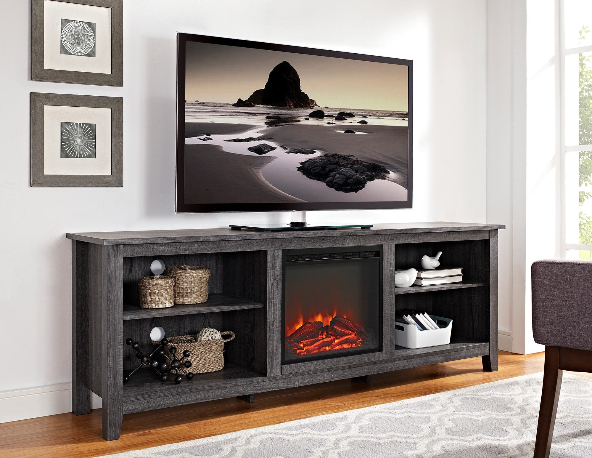 Зона телевизора с камином
