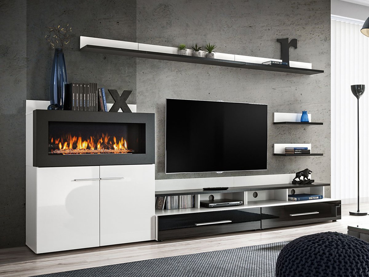 Стенка с камином в гостиную в современном стиле