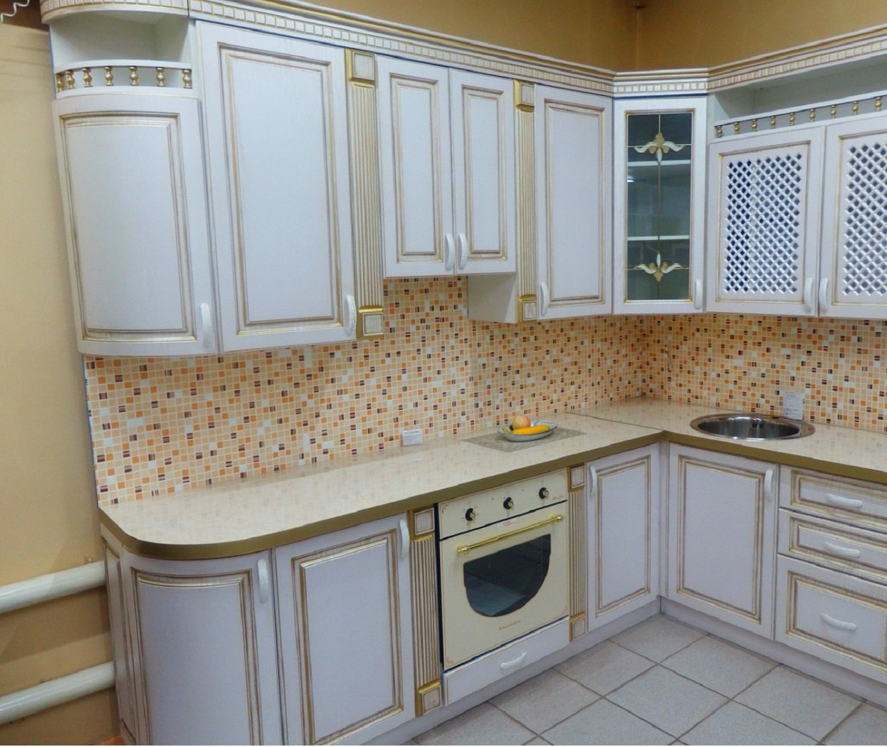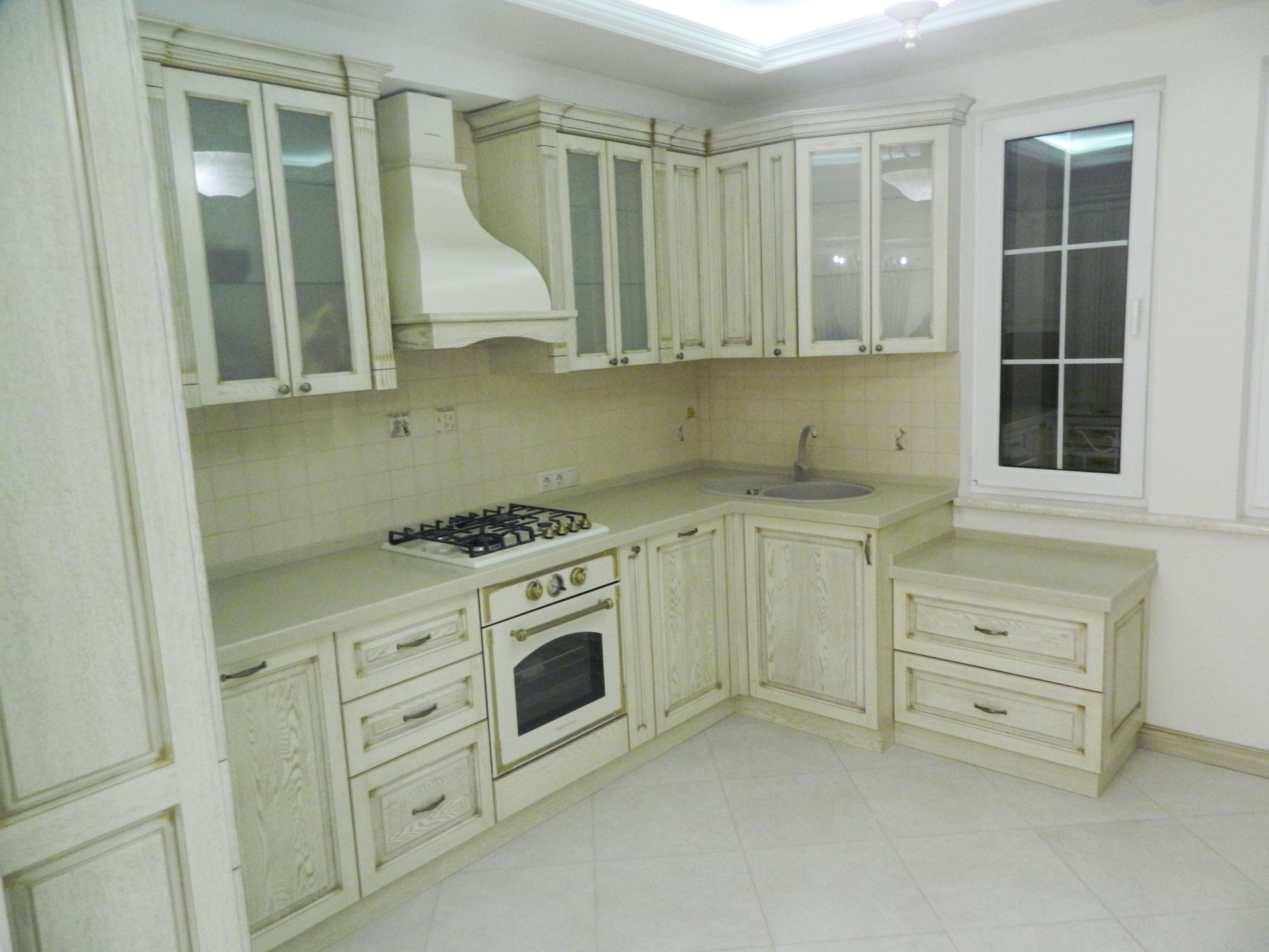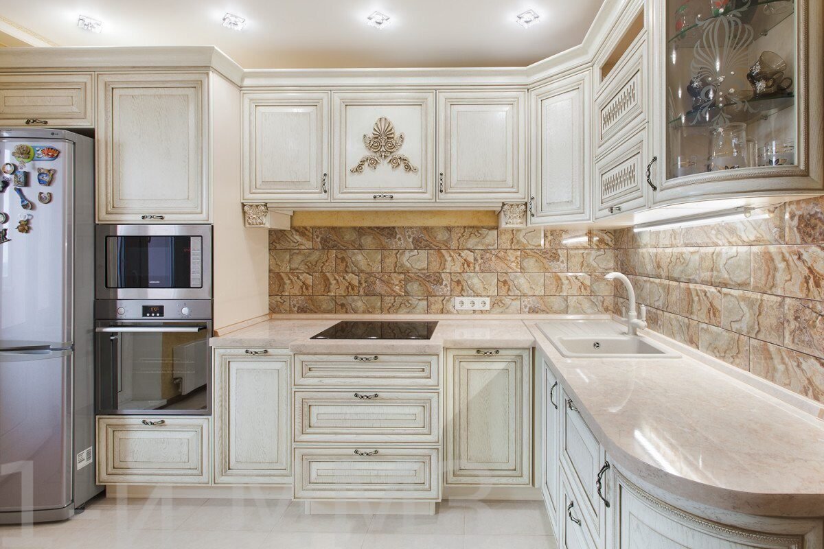 Кухня беж патина классика угловая