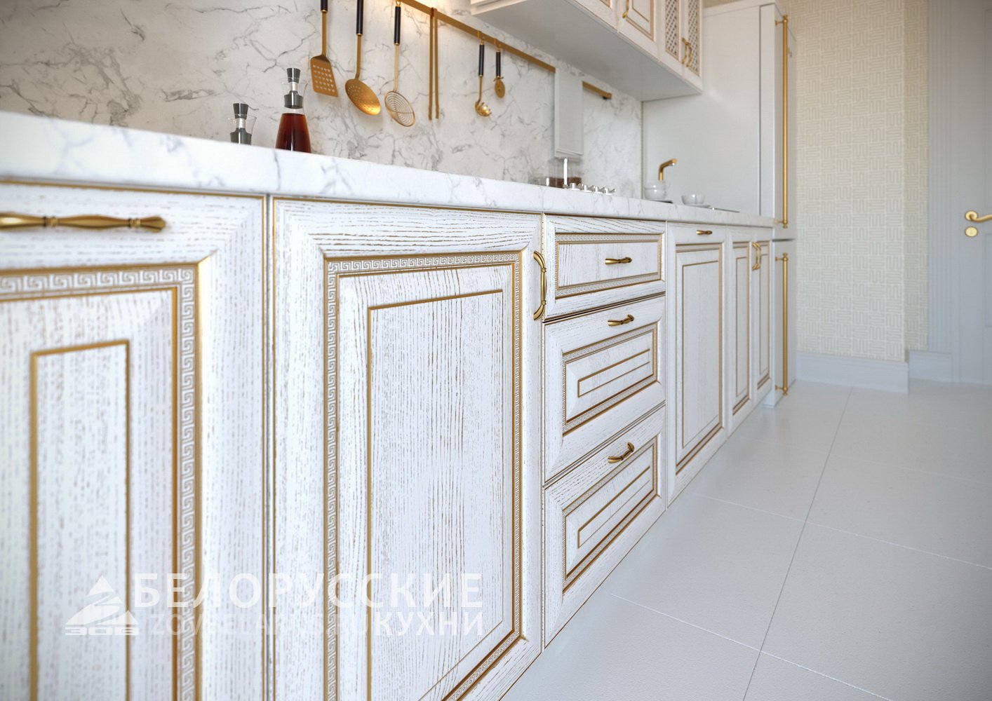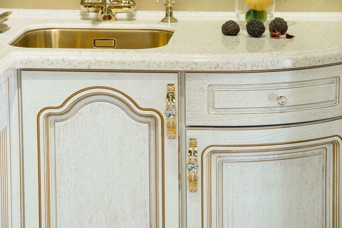 Кухня белая классика с золотой патиной фабрика Бор