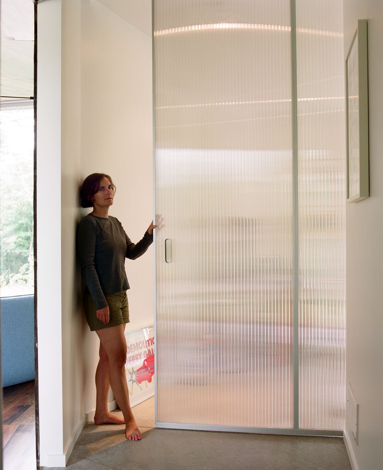 Стеклянная перегородка с подсветкой растения