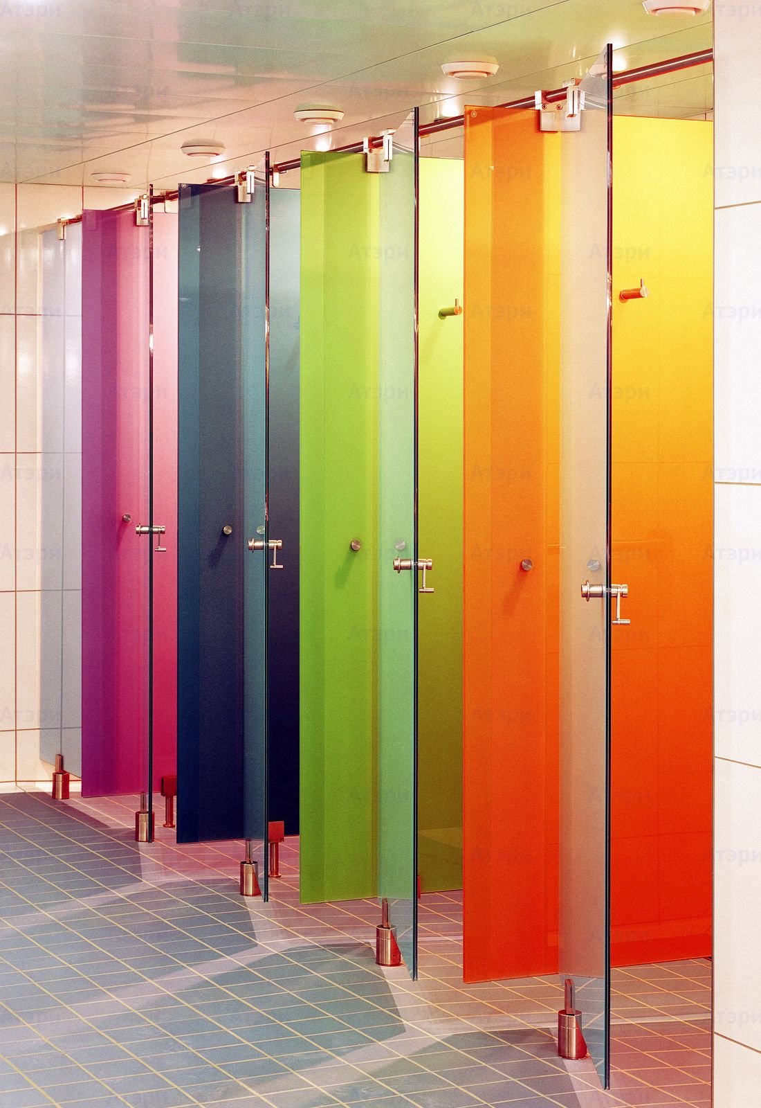 Цветные стеклянные перегородки в ванной