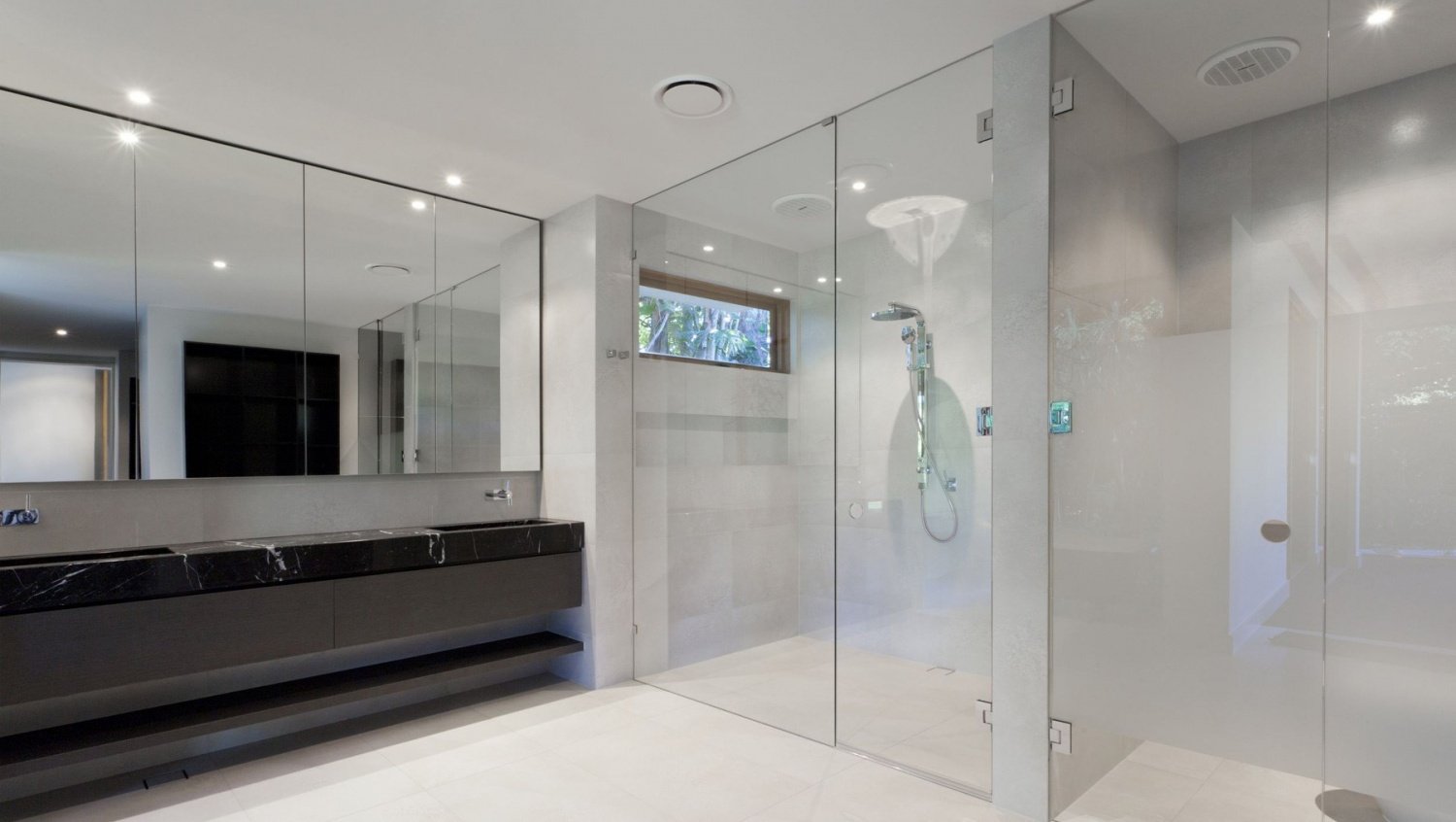 Стеклянные раздвижные перегородки в ванную комнату