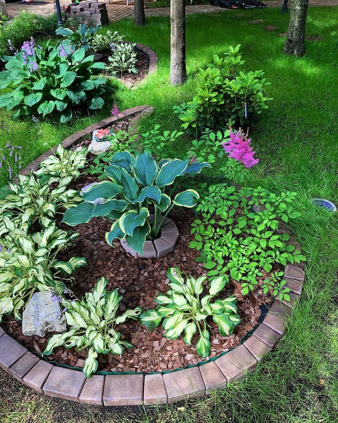 Клумба мульча туи, хосты