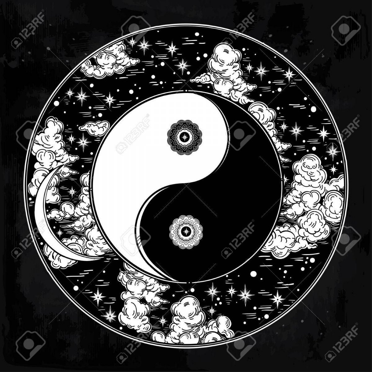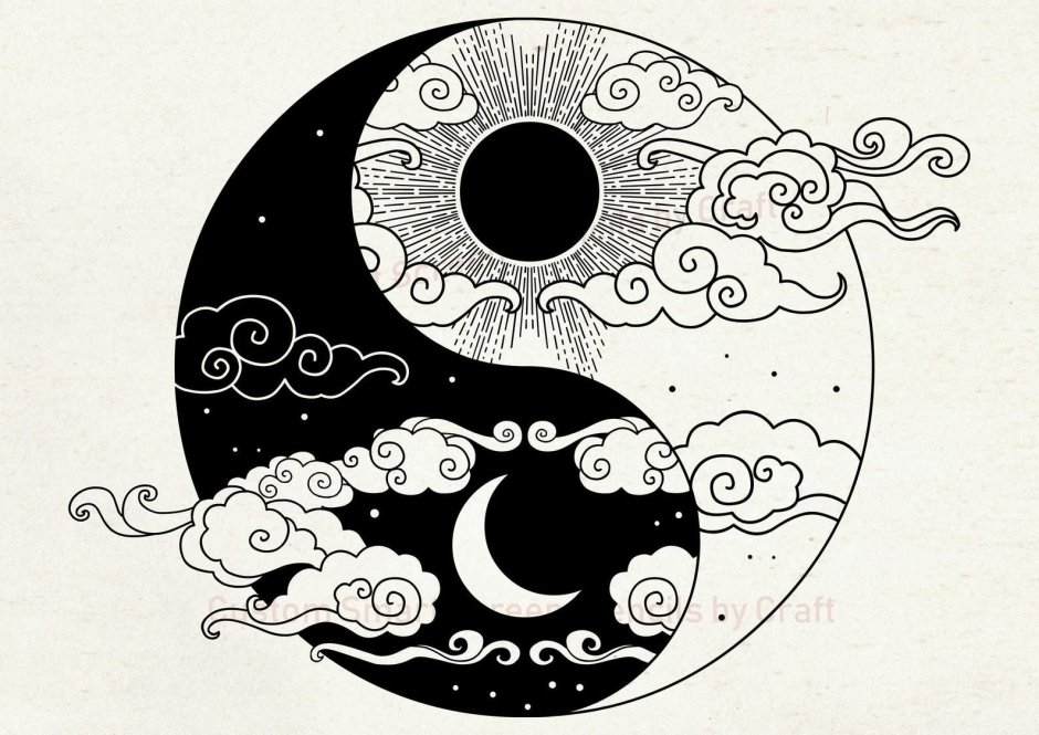 Тату Япония Луна Инь Янь