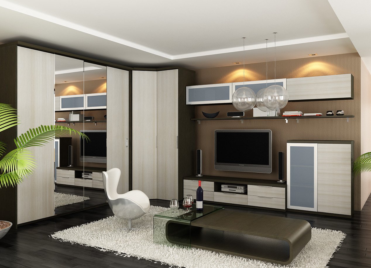 Современная гостиная со шкафом