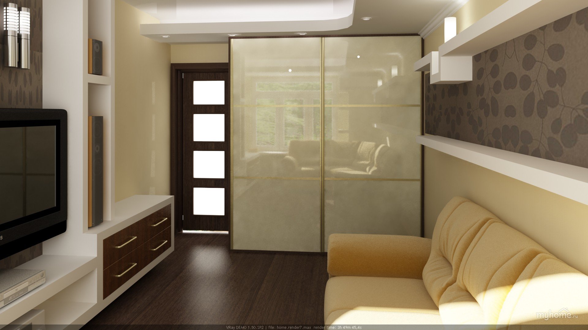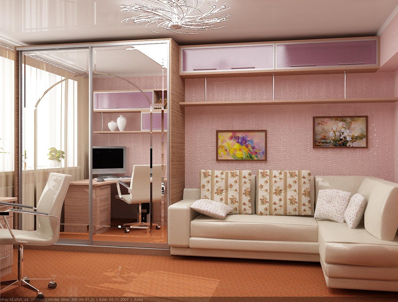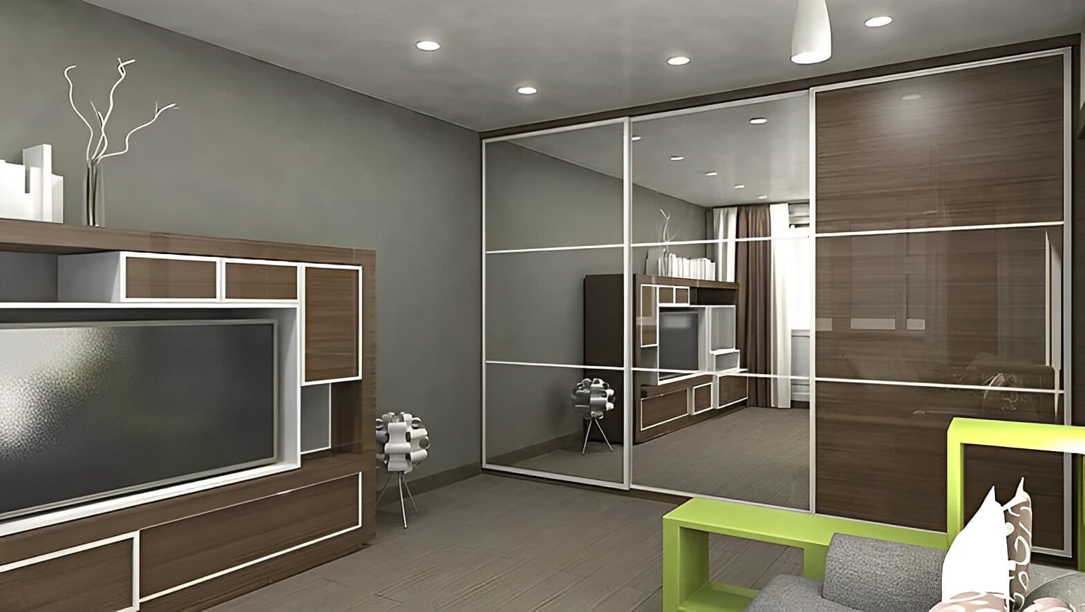 Комната со шкафом купе и диваном