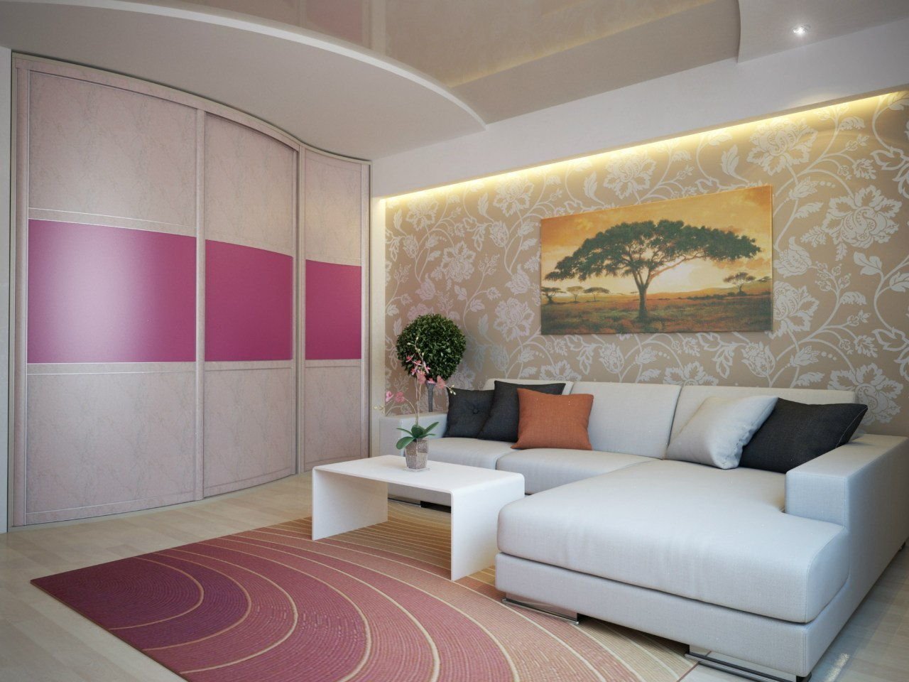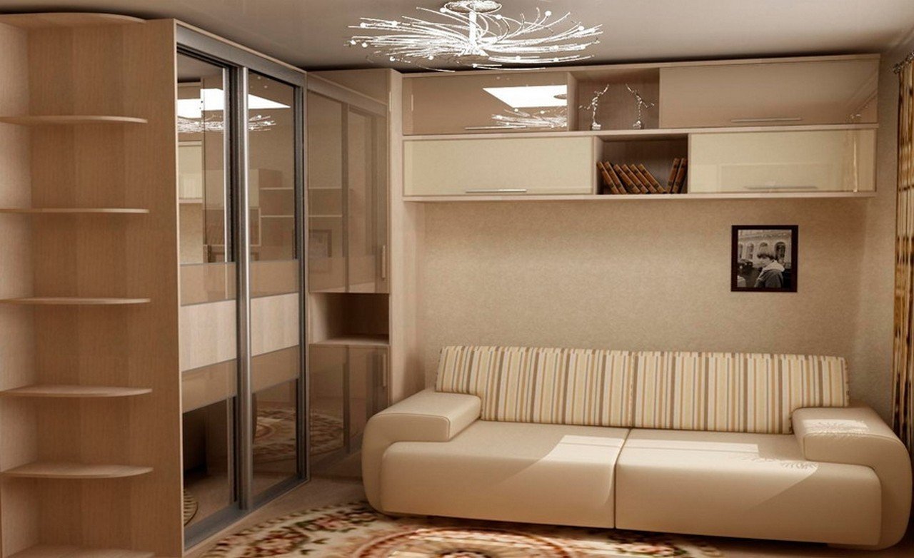 Гостиная с диваном и шкафом купе