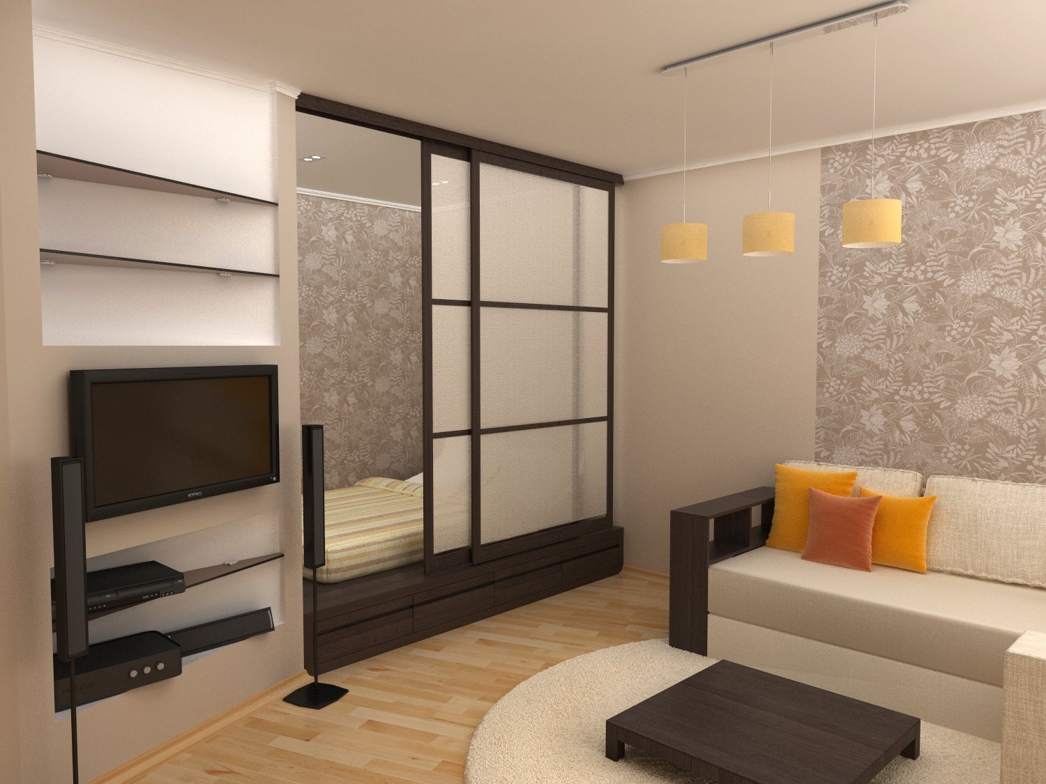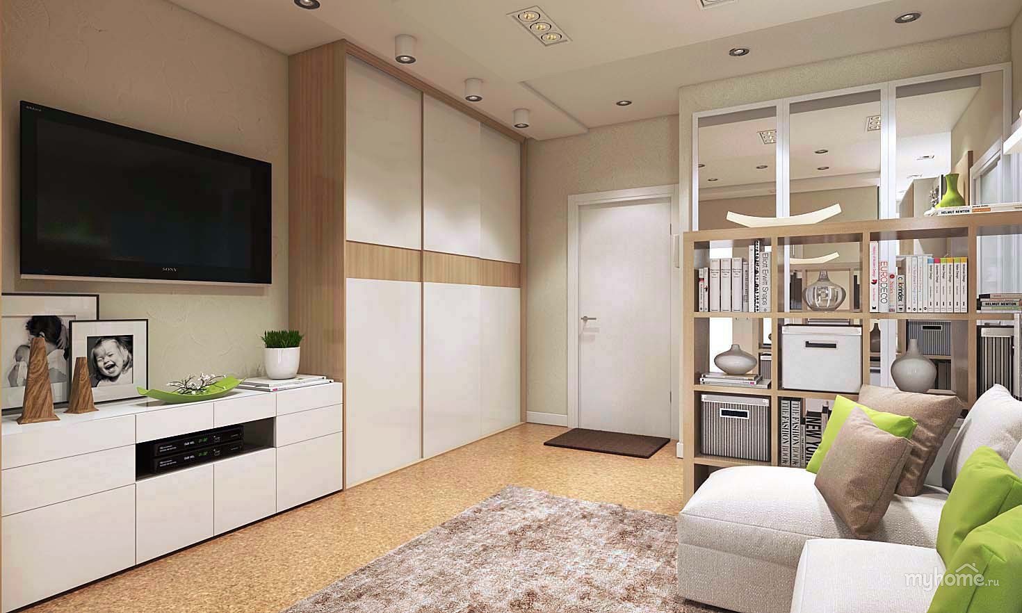 Интерьер однокомнатной квартиры со шкафом купе
