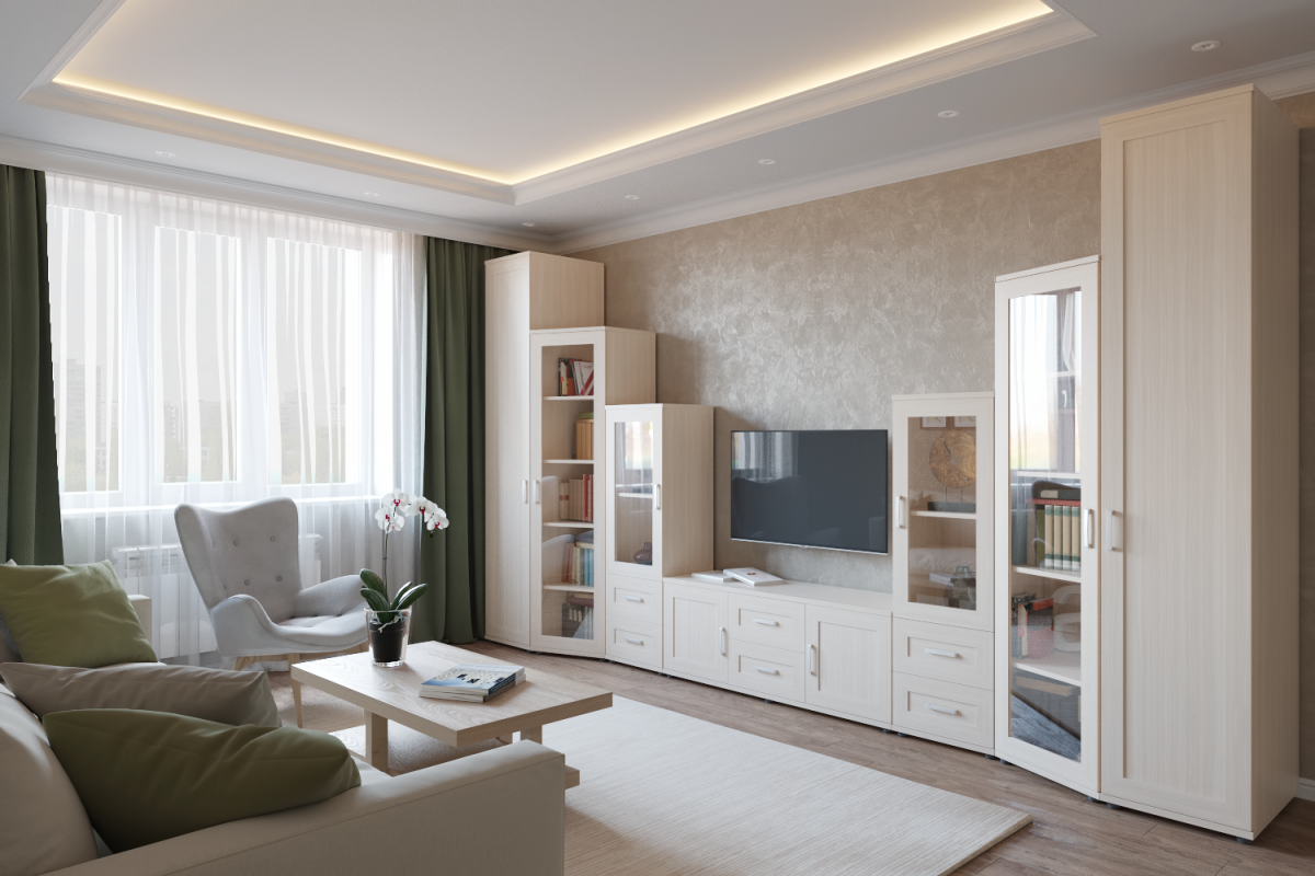 Светлая гостиная в современном стиле со шкафом