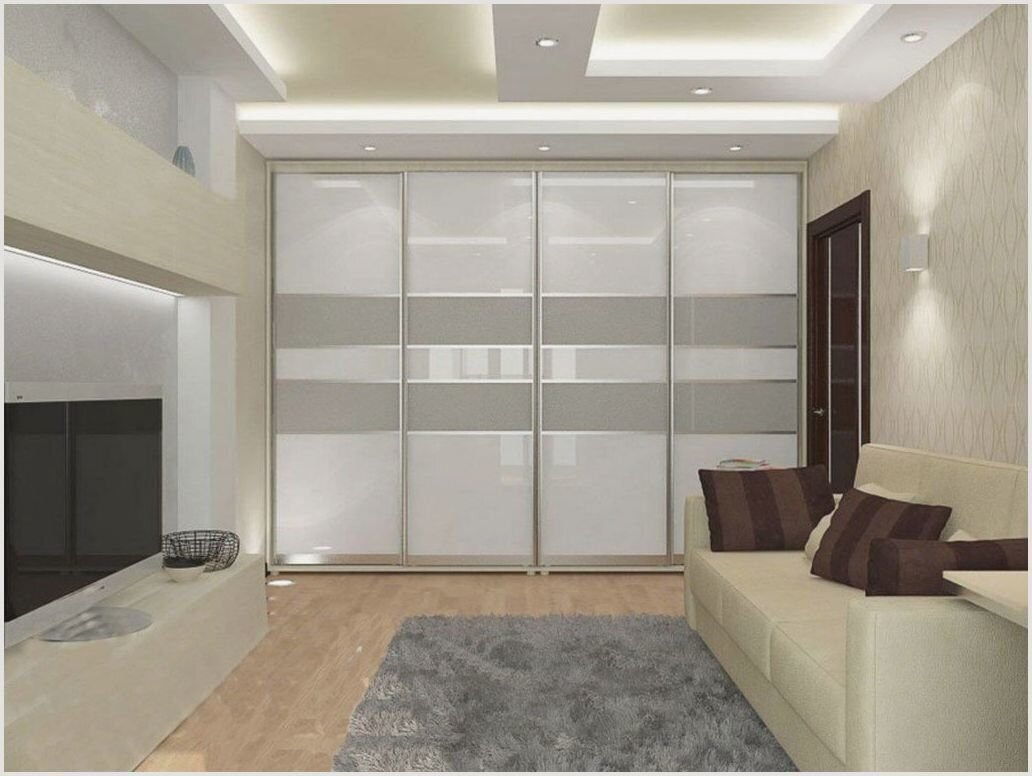 Интерьер со шкафом купе в гостиной в интерьере