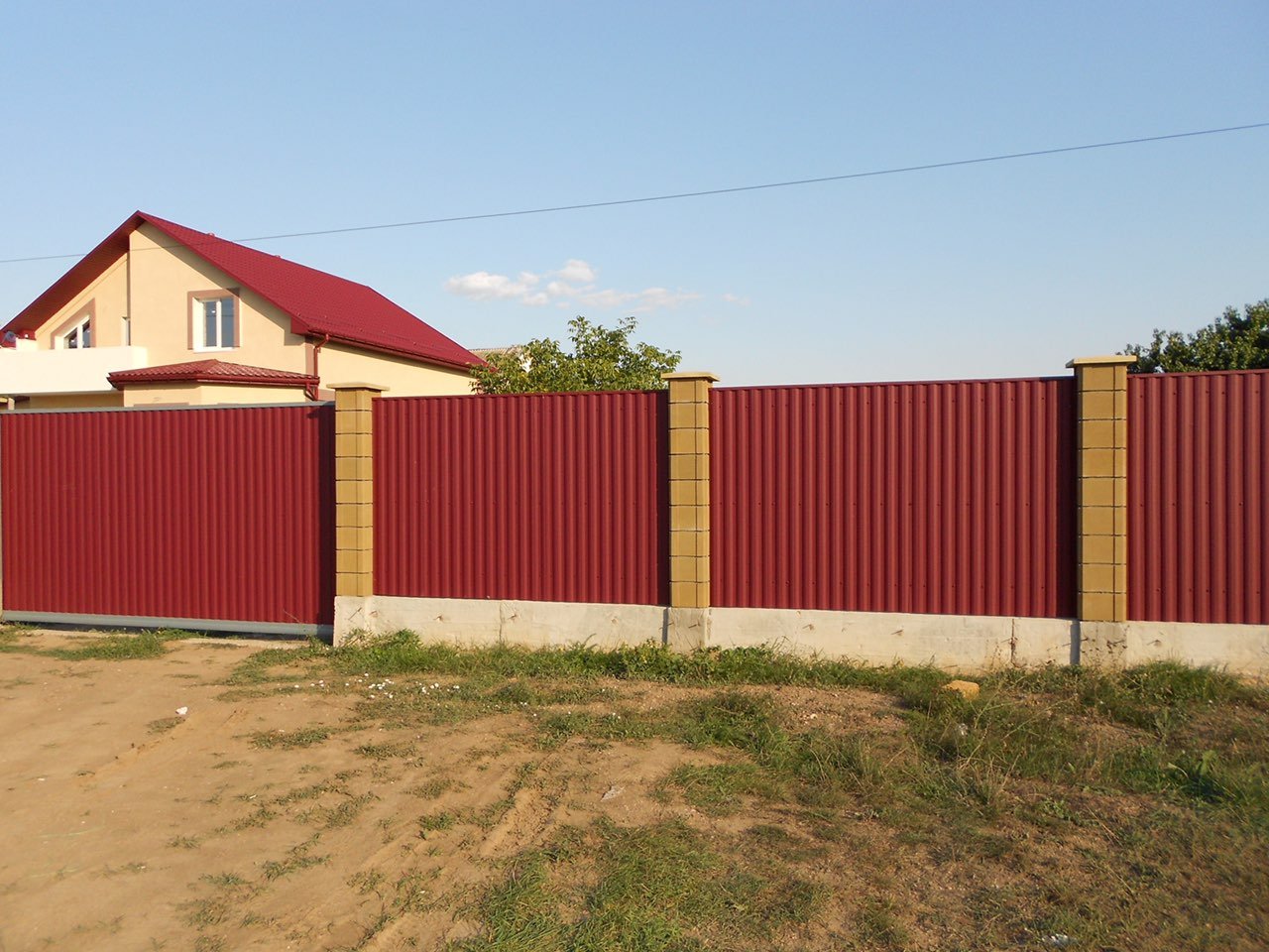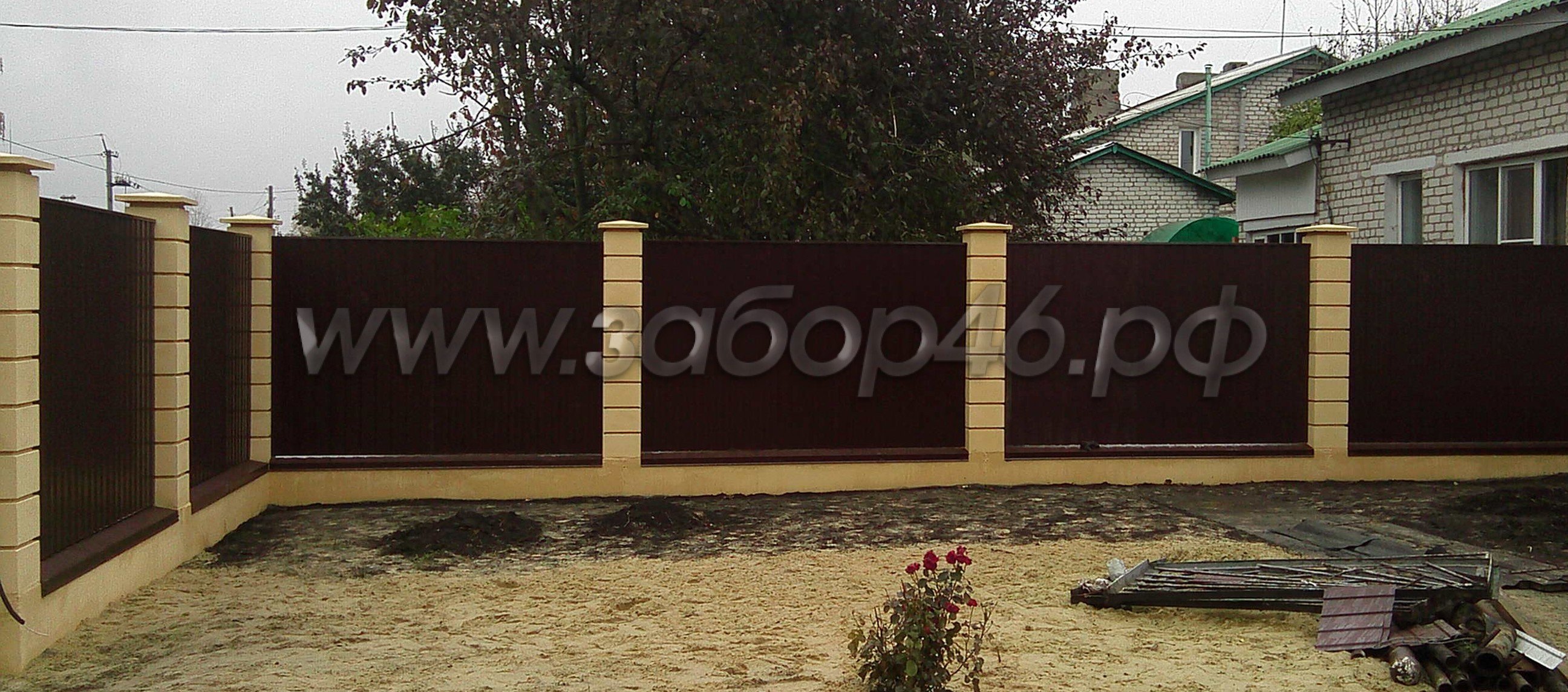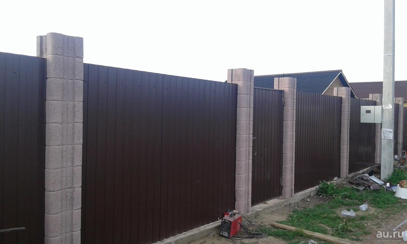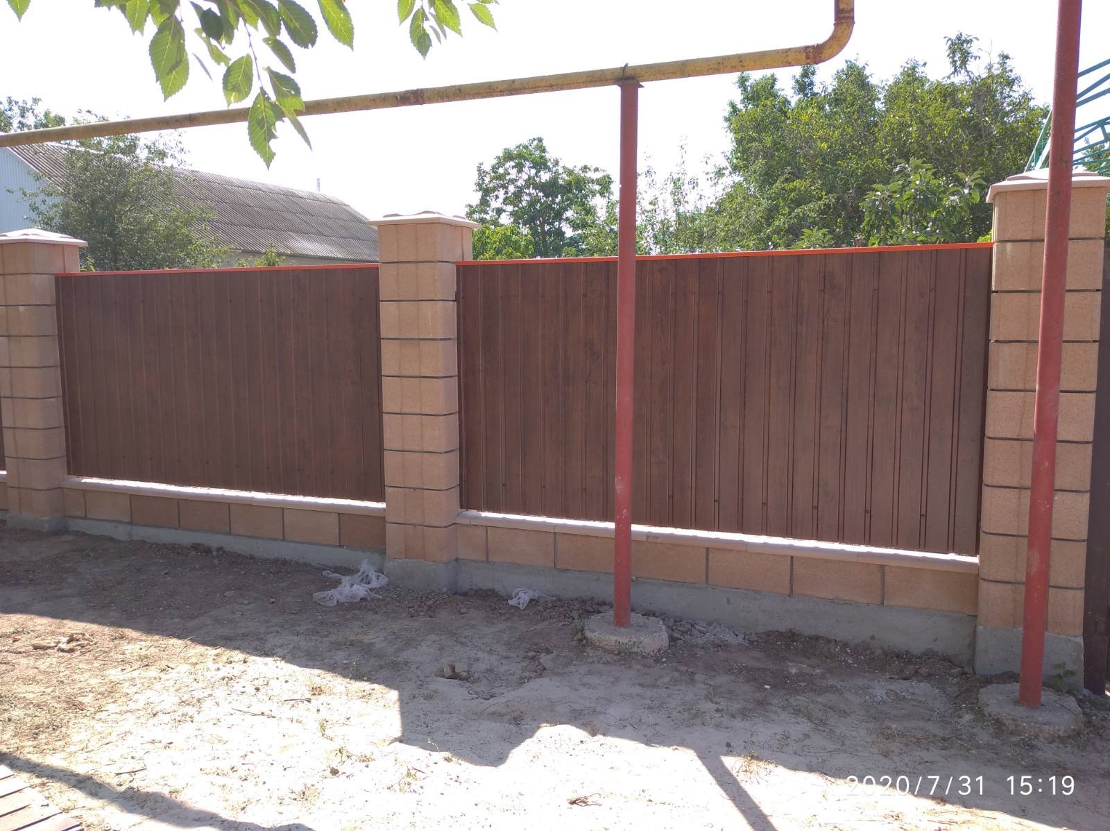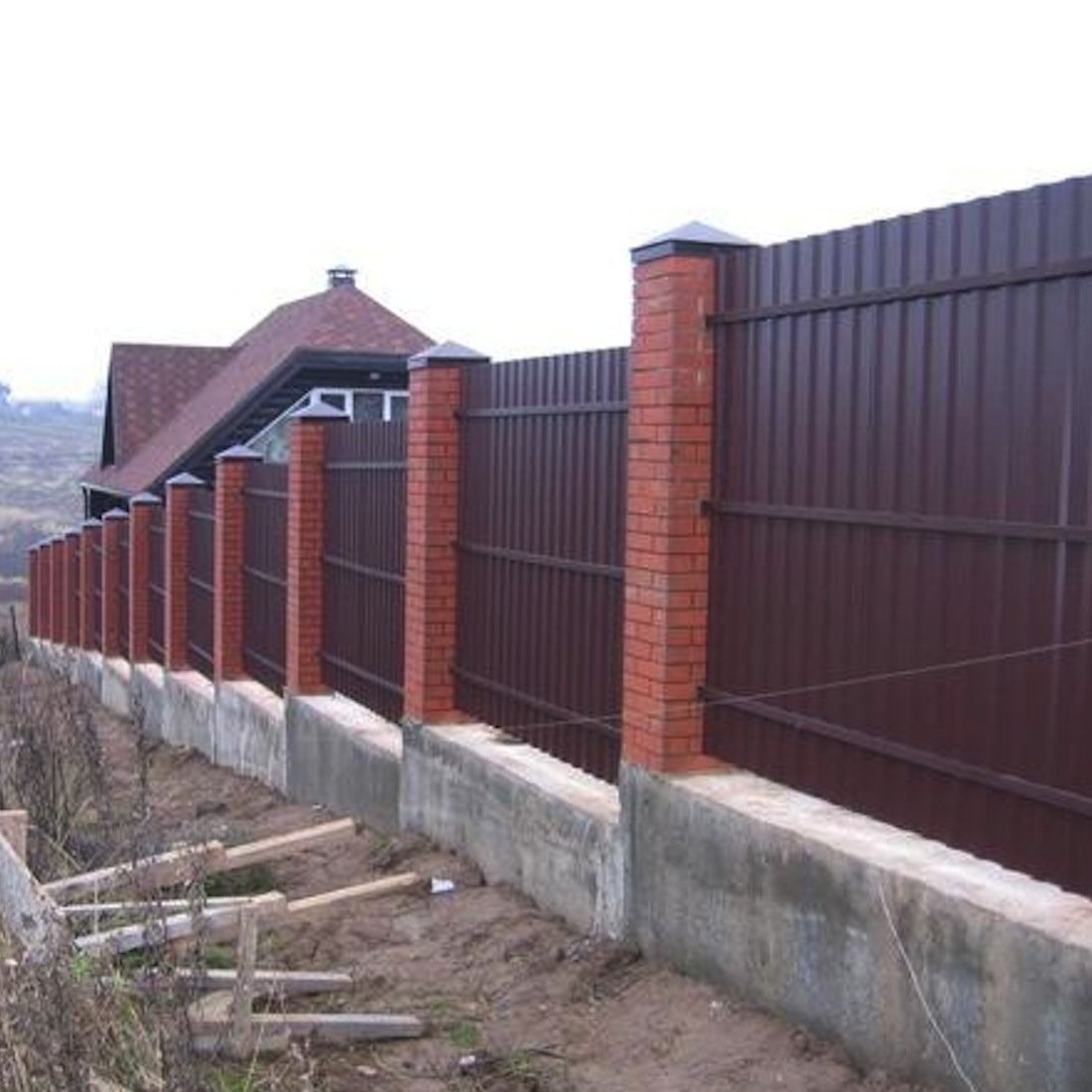 Забор из профнастила с колоннами из француза