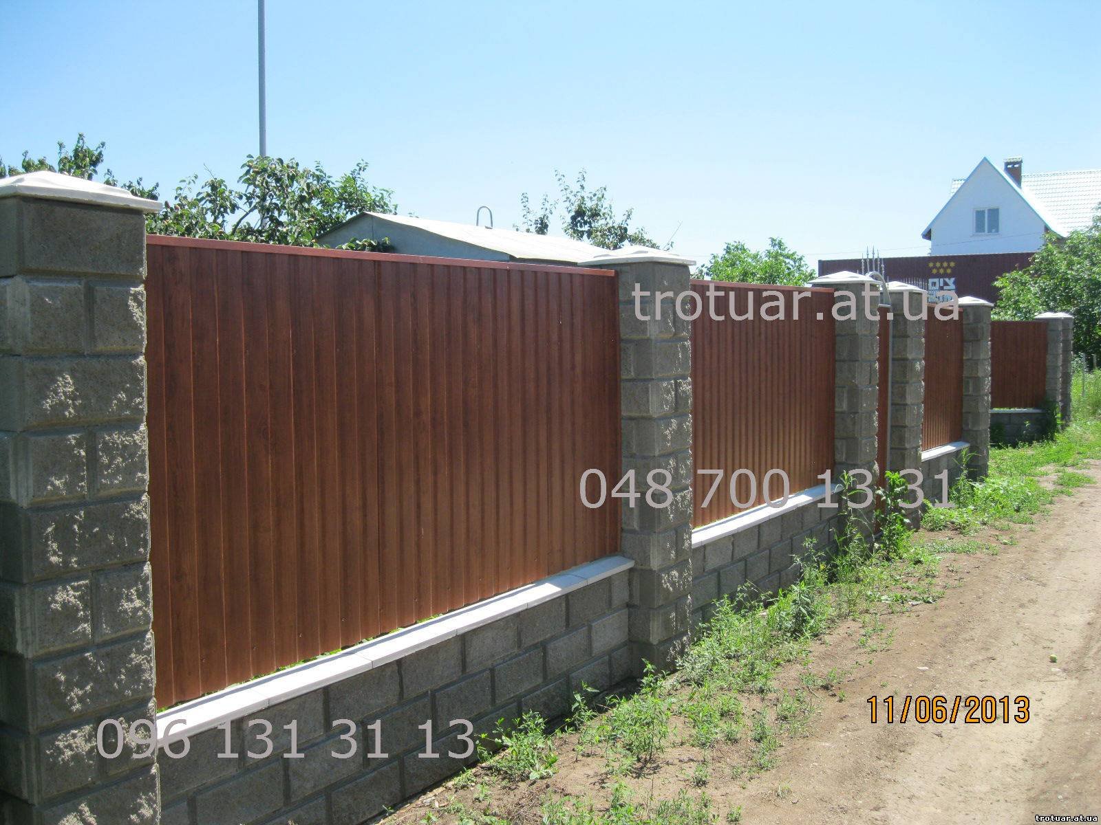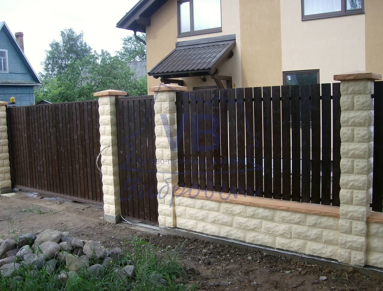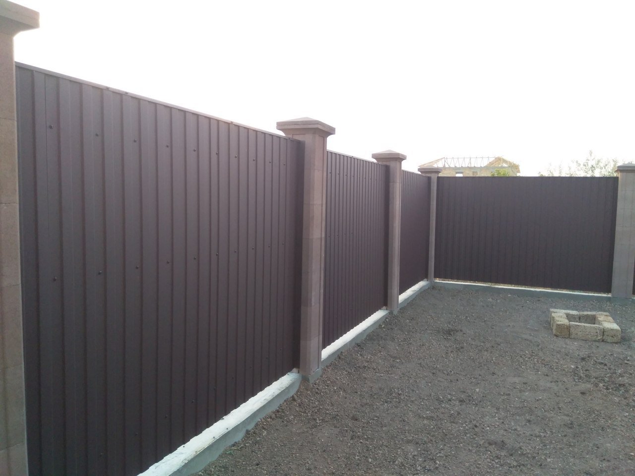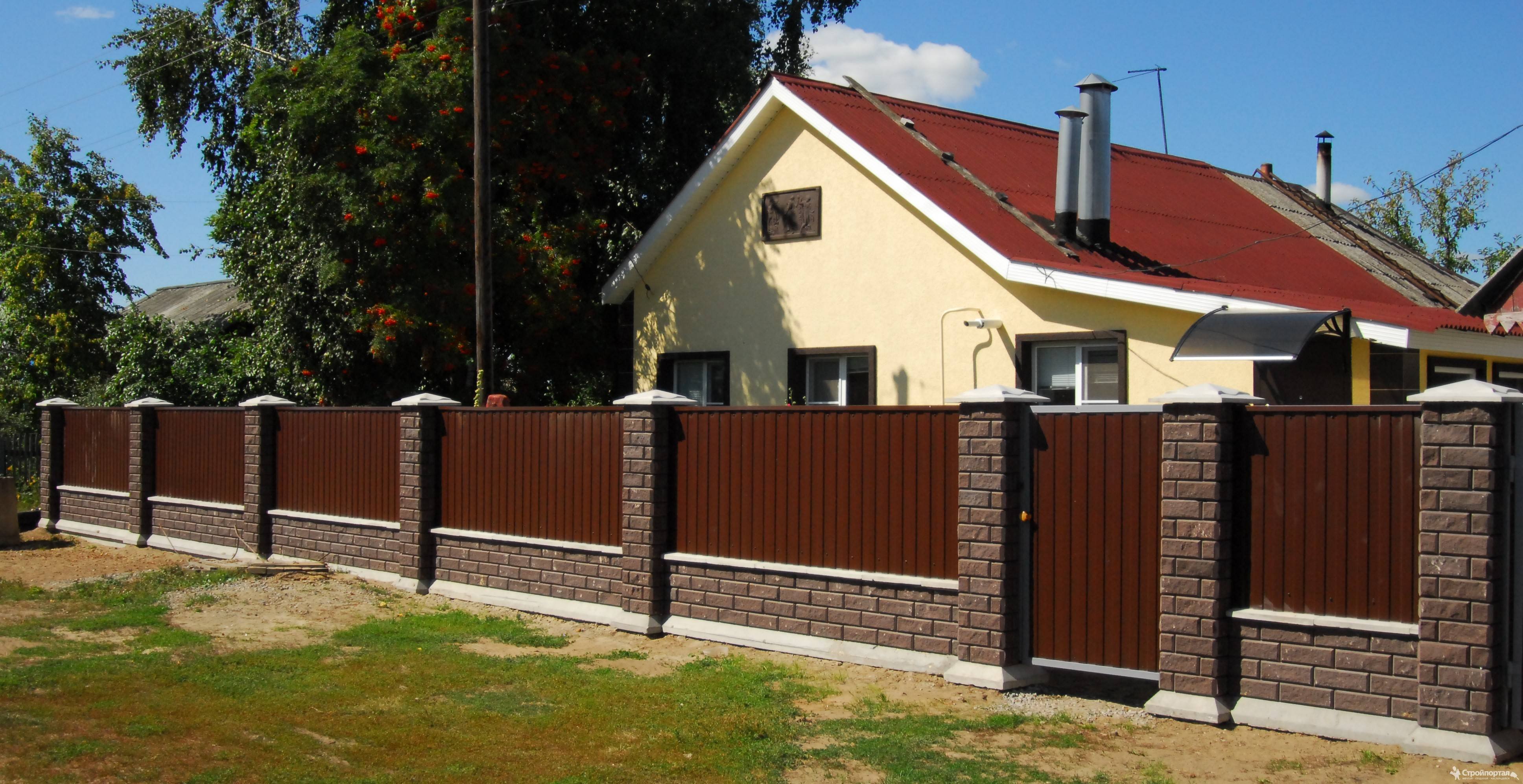 Забор каменные столбы и профлист