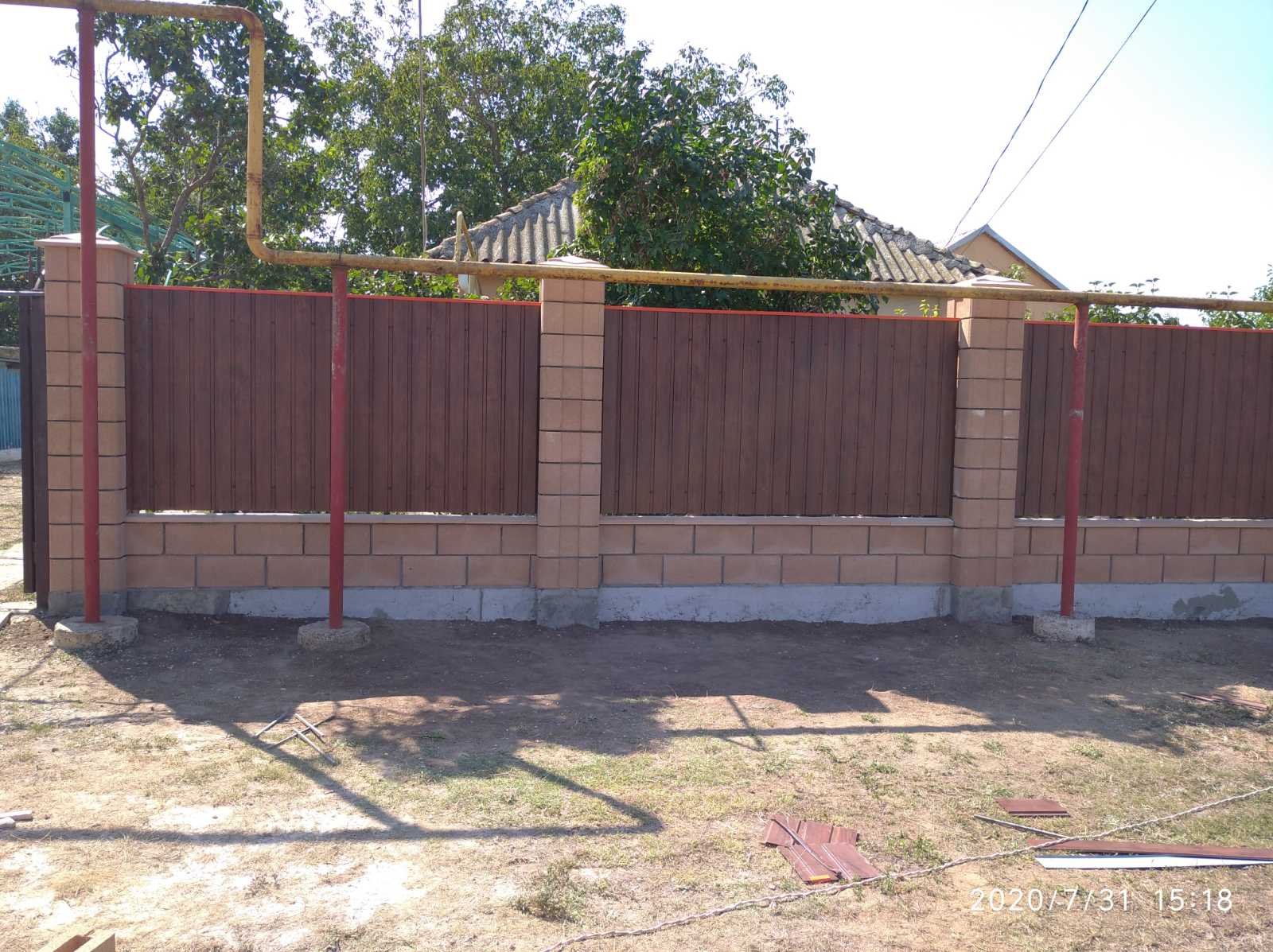 Забор из блоков и профнастила