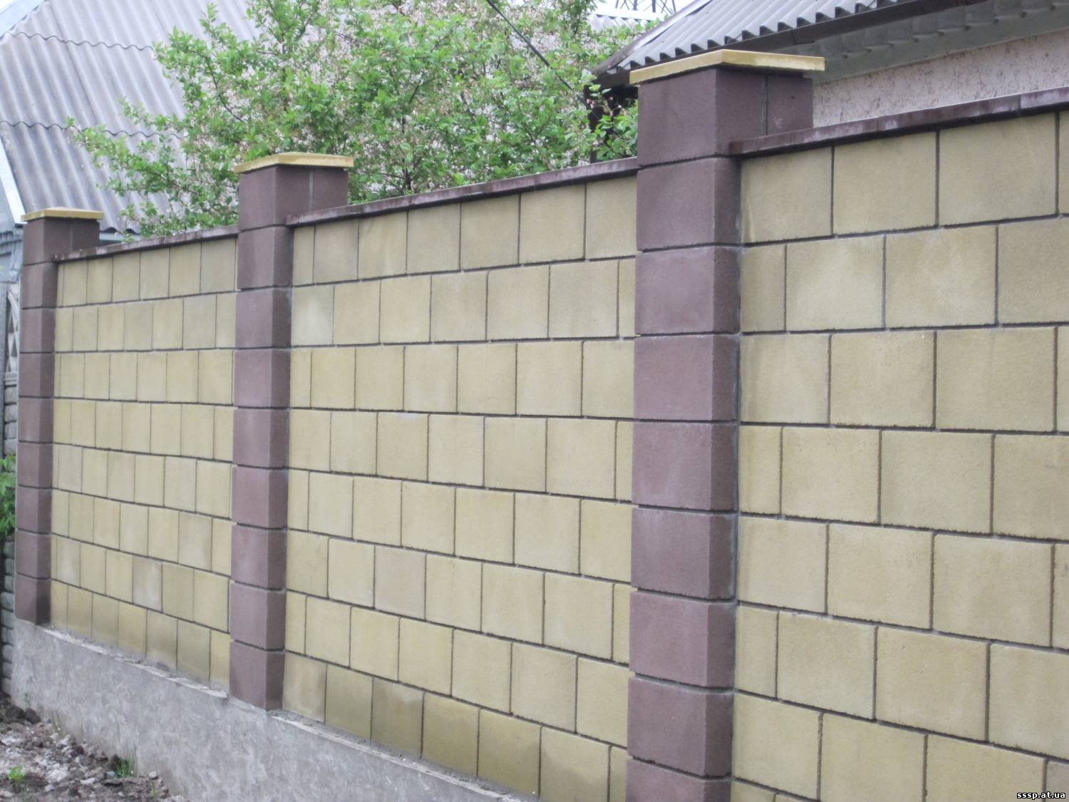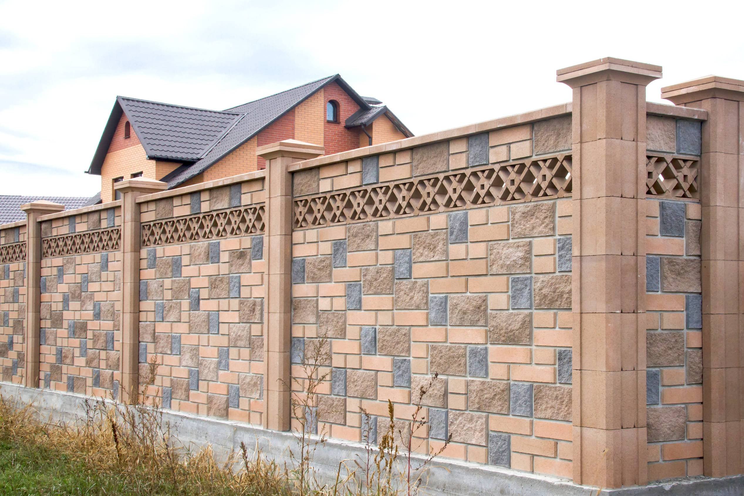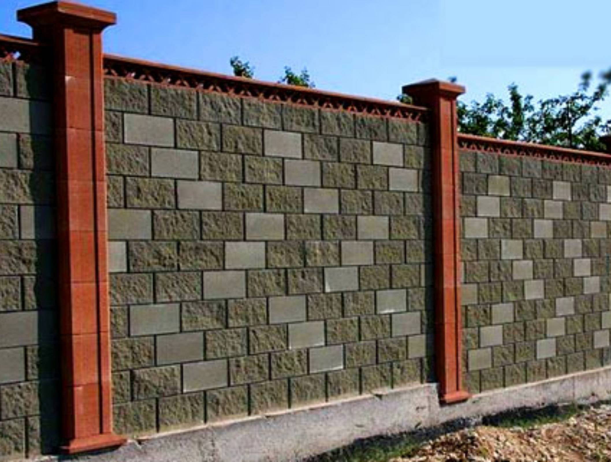 Забор с колоннами из блоков