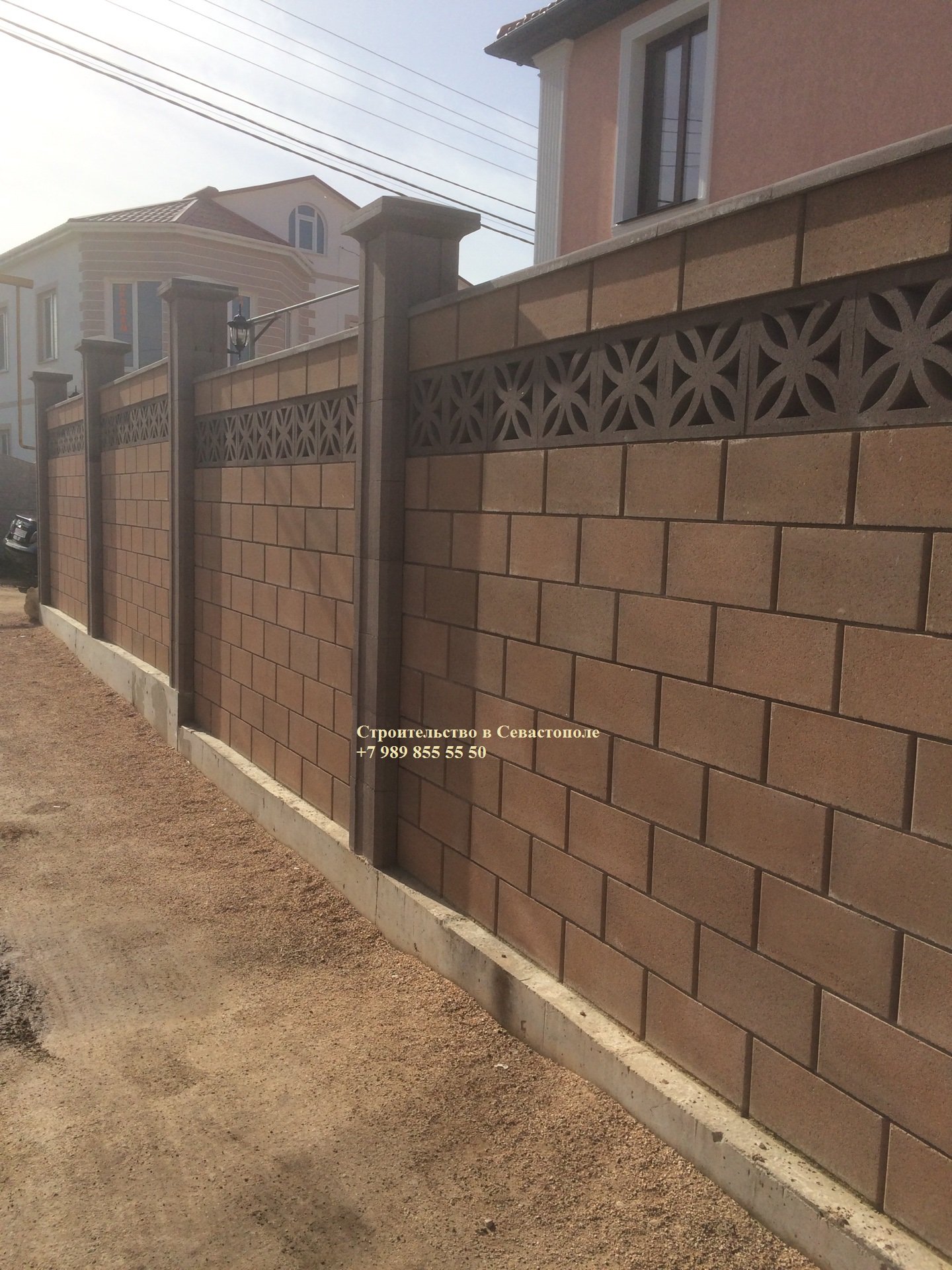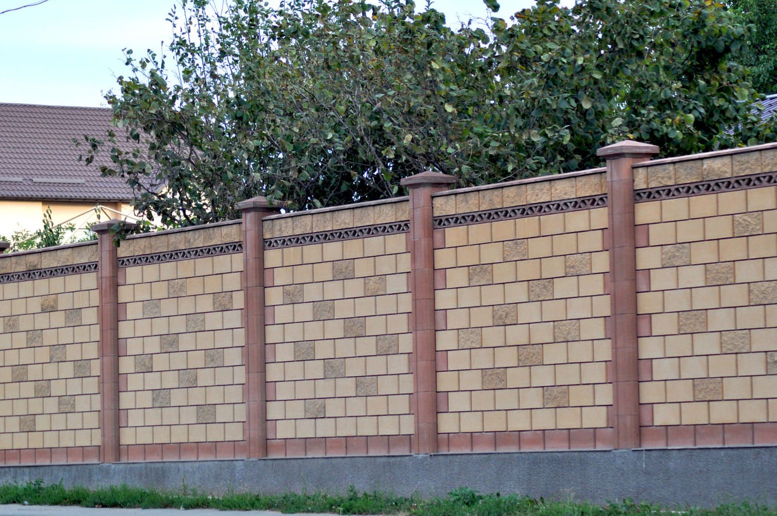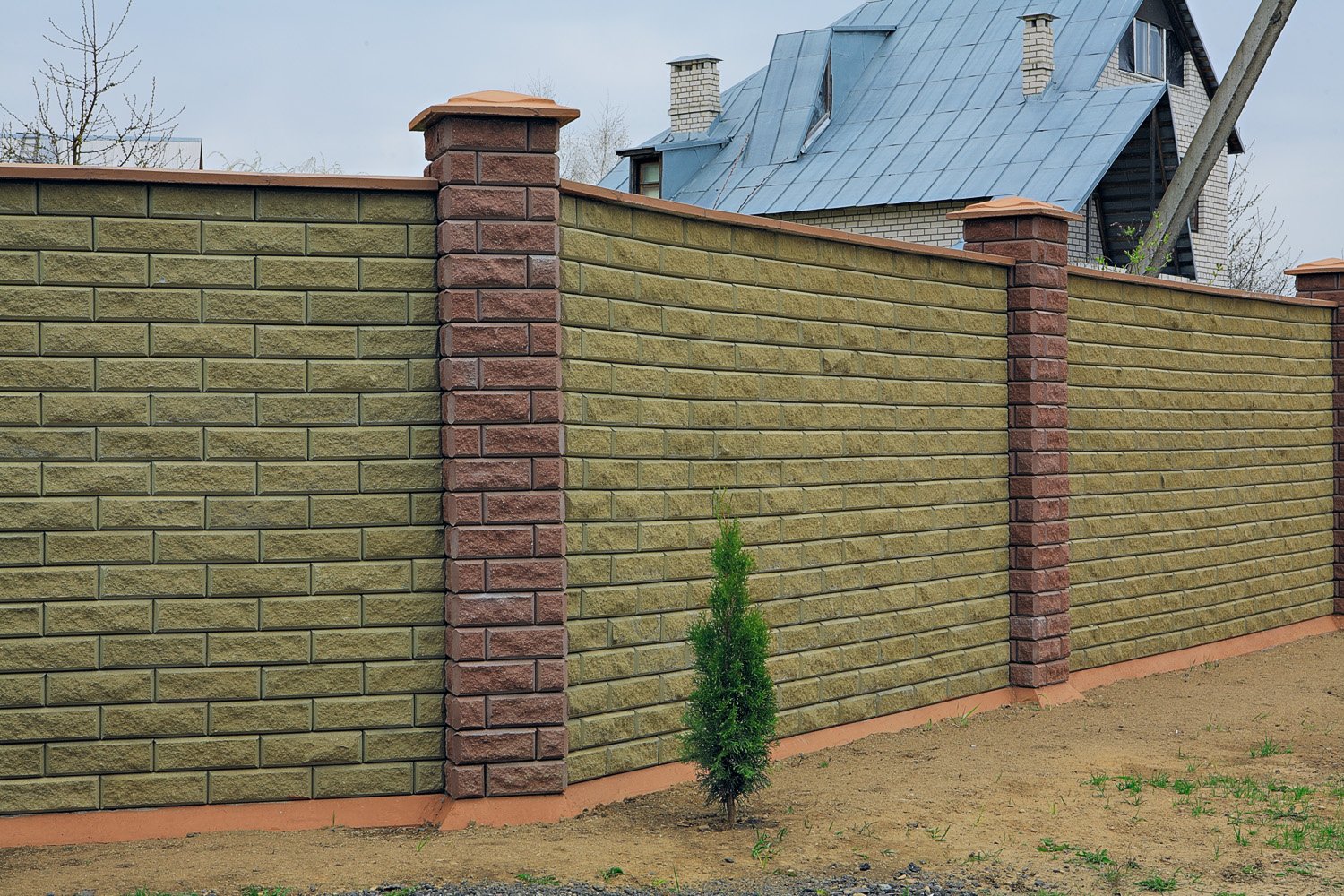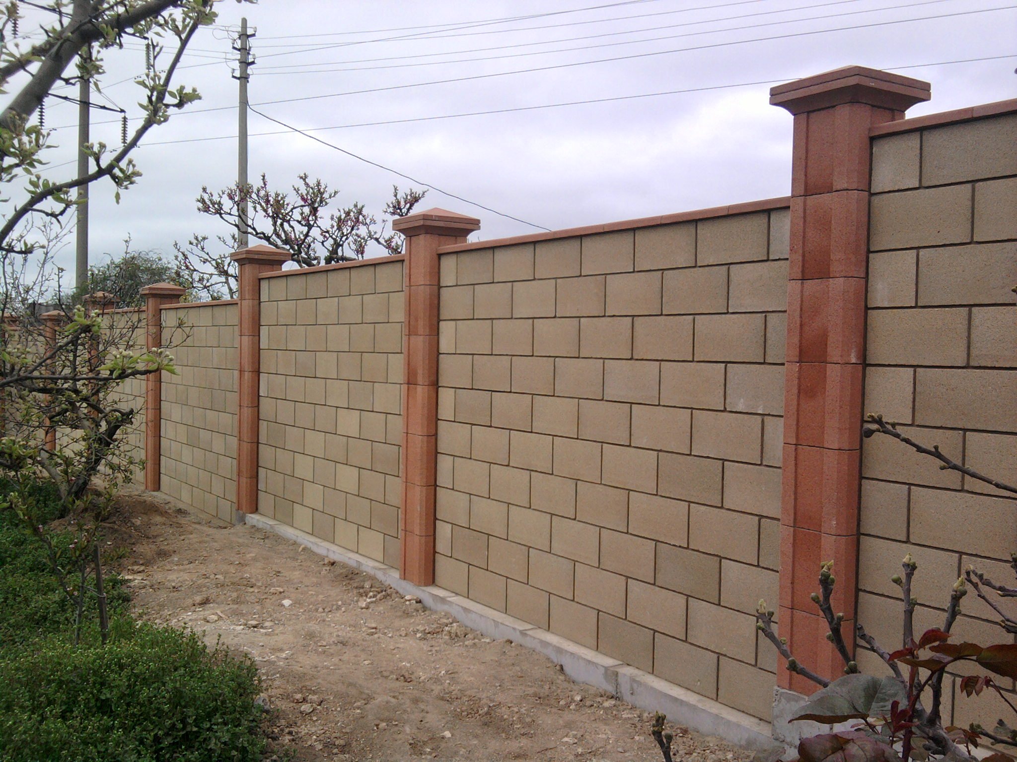 Забор с колоннами из блоков