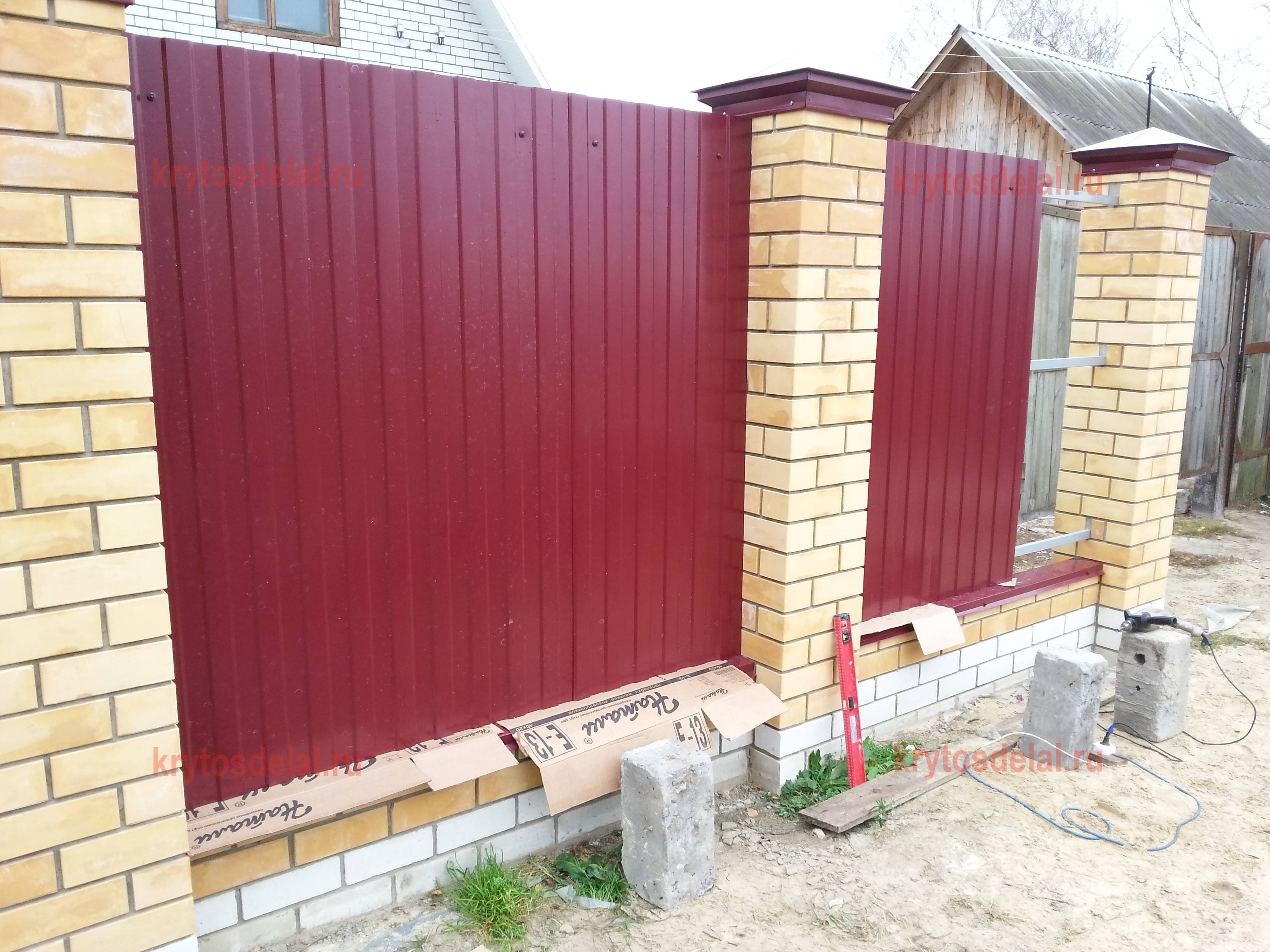 Забор из профнастила с колоннами
