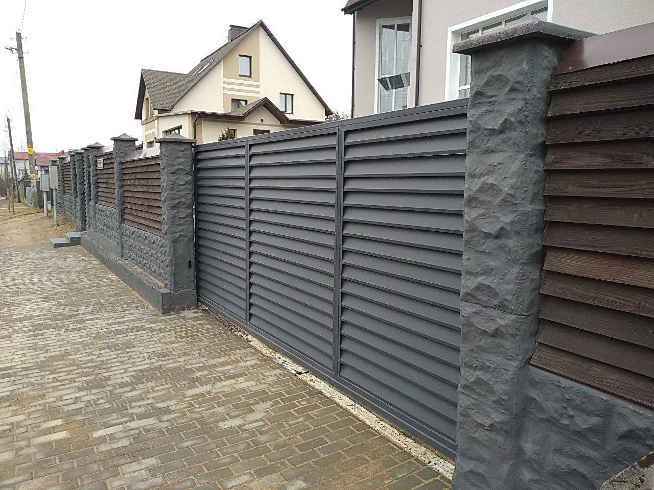 Забор французский камень и профнастил