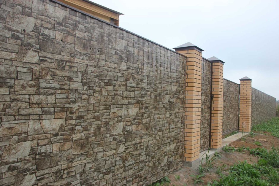 Забор из французского камня и профнастила